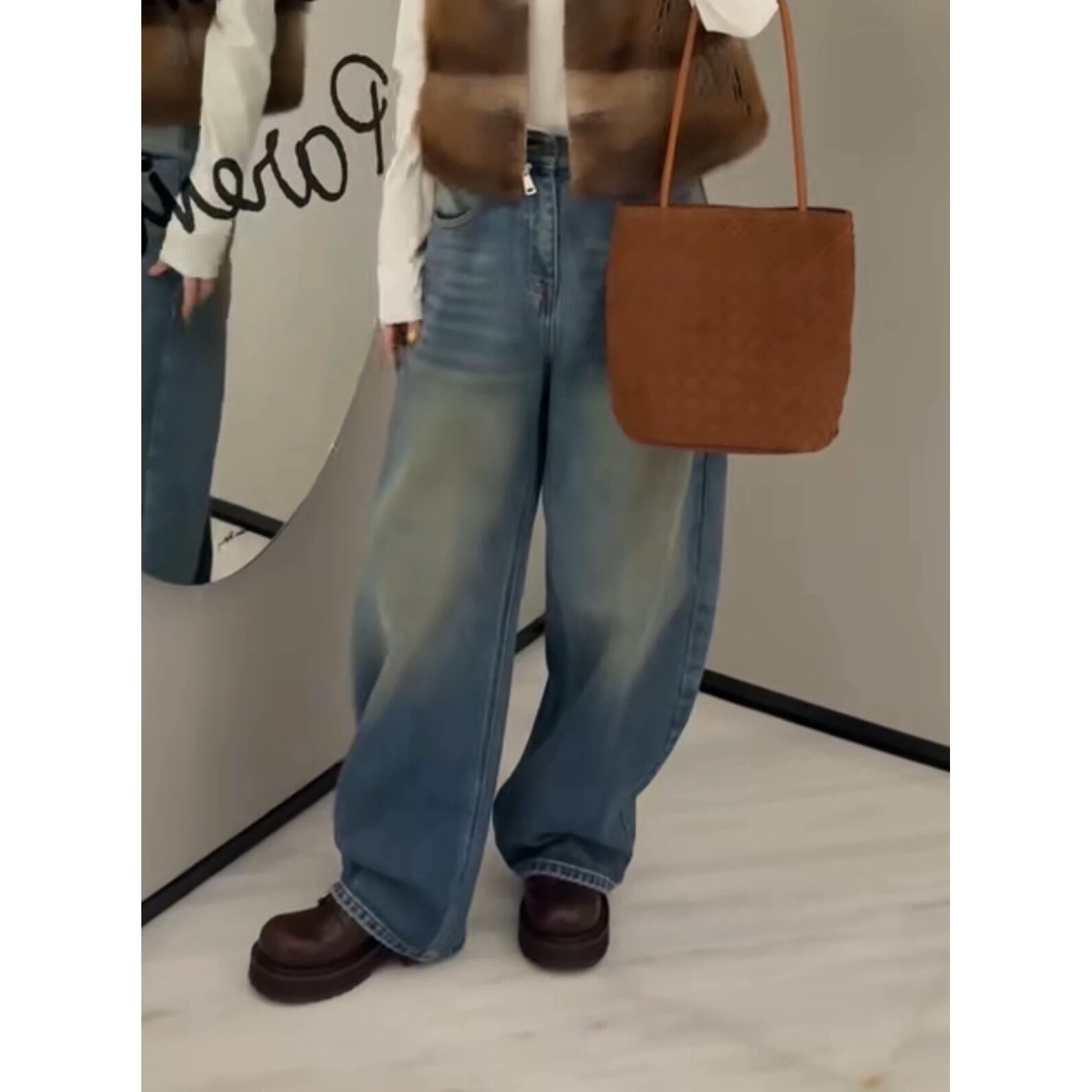 子 加绒高腰小个子宽松慵懒直筒裤 MYFC白色阔腿牛仔裤 女2025新款
