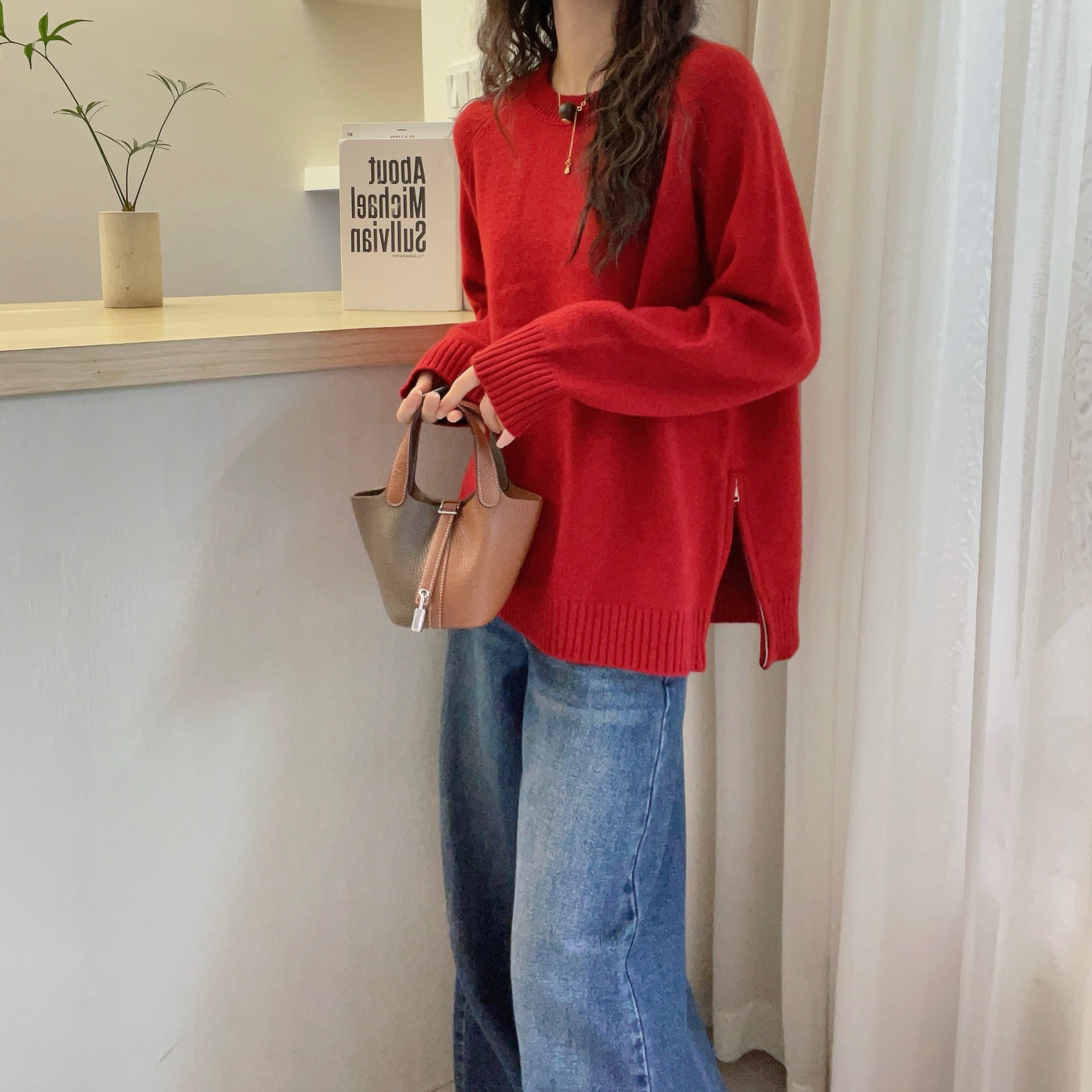 20:00鹅蛋领针织纯色通勤显瘦羊毛打底针织衫 Chestnut 12.18