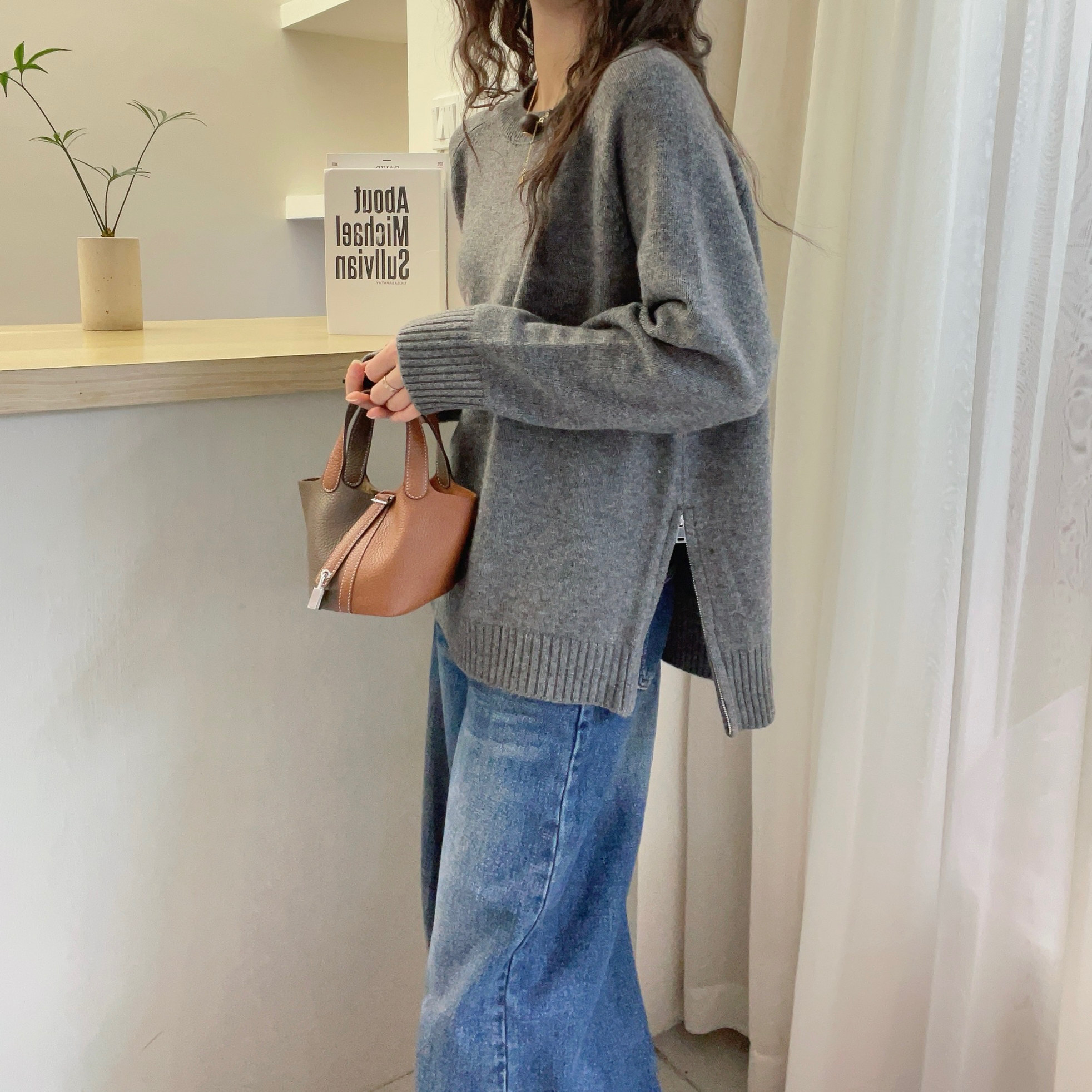 套头上衣秋冬新款 十一石 毛衣女长袖 圆领羊毛针织衫 极简实穿