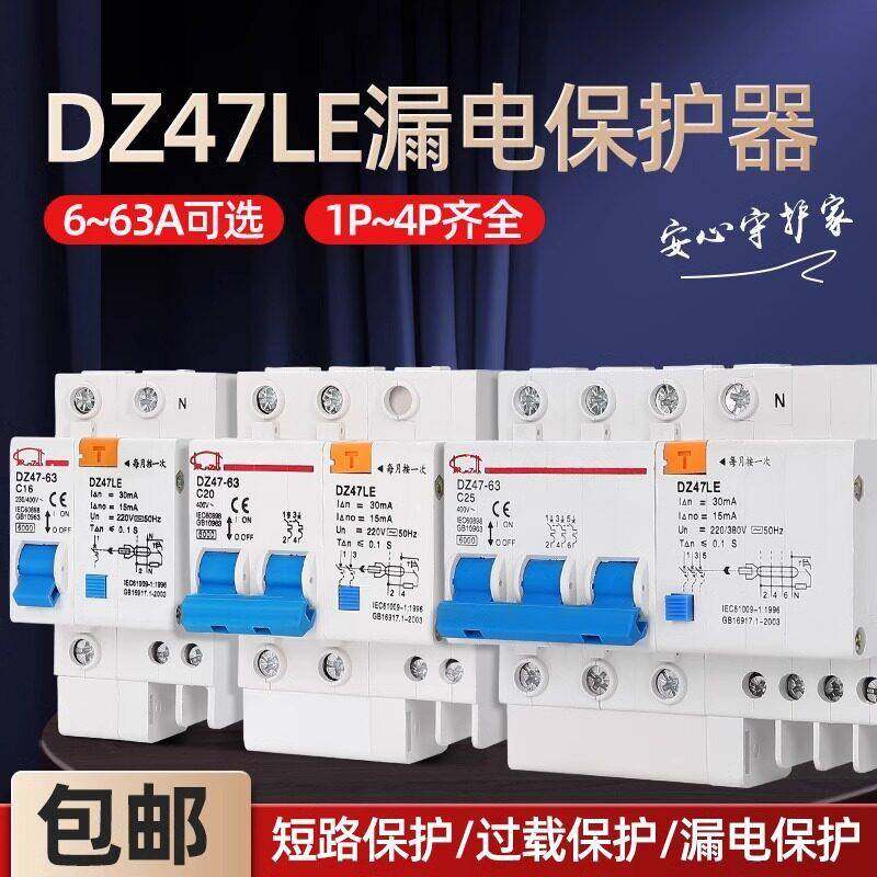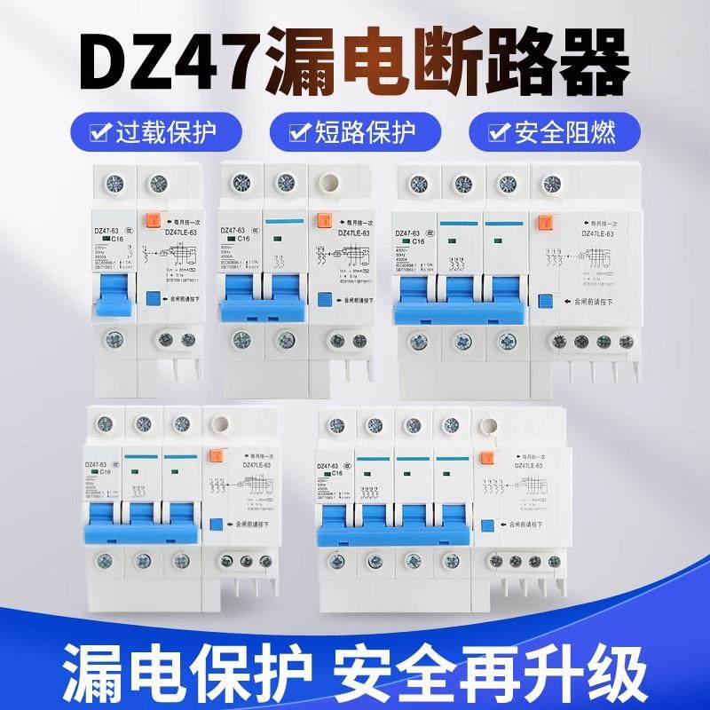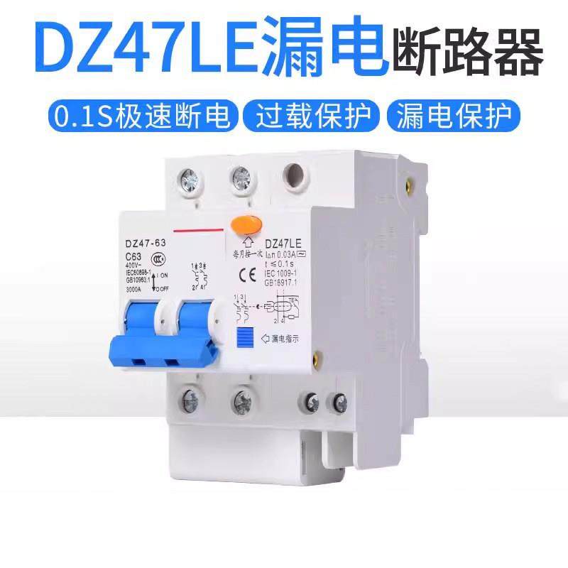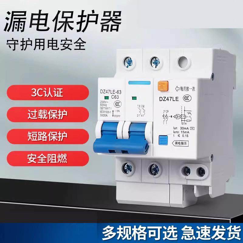 德力西空气开关带漏电保护器DZ47SLE家用220v漏保2P63A断路器空开