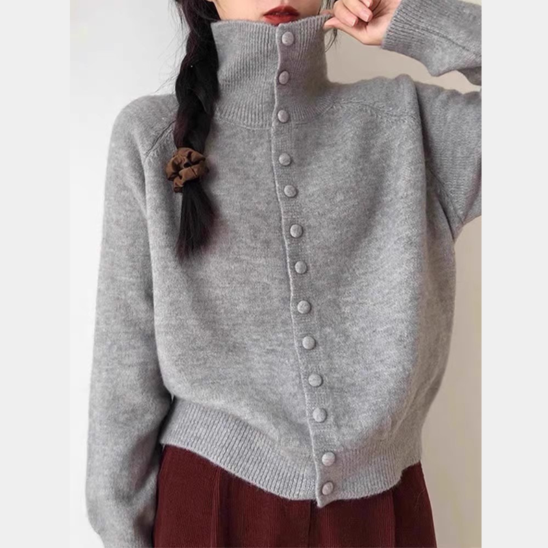 半高领设计感针织开衫 新款 洋气紫色立领方扣毛衣女2025年春季 韩版