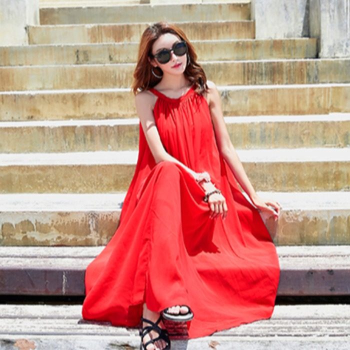 2021新夏季 波西米亚海边度假大裙摆吊带长裙子 沙滩雪纺连衣裙大码