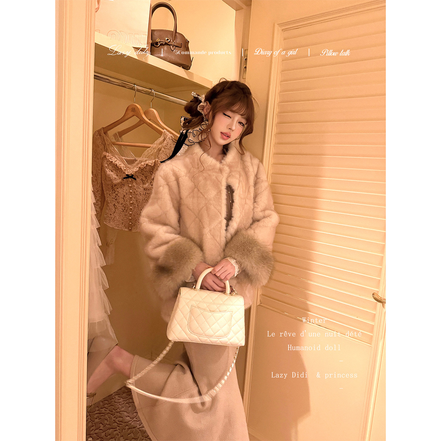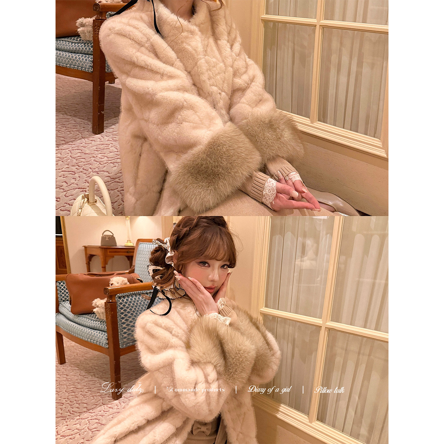 Lazy 1200g仿貂皮草软麂皮内里日系千金感大衣外套 Didi月光雪貂