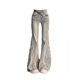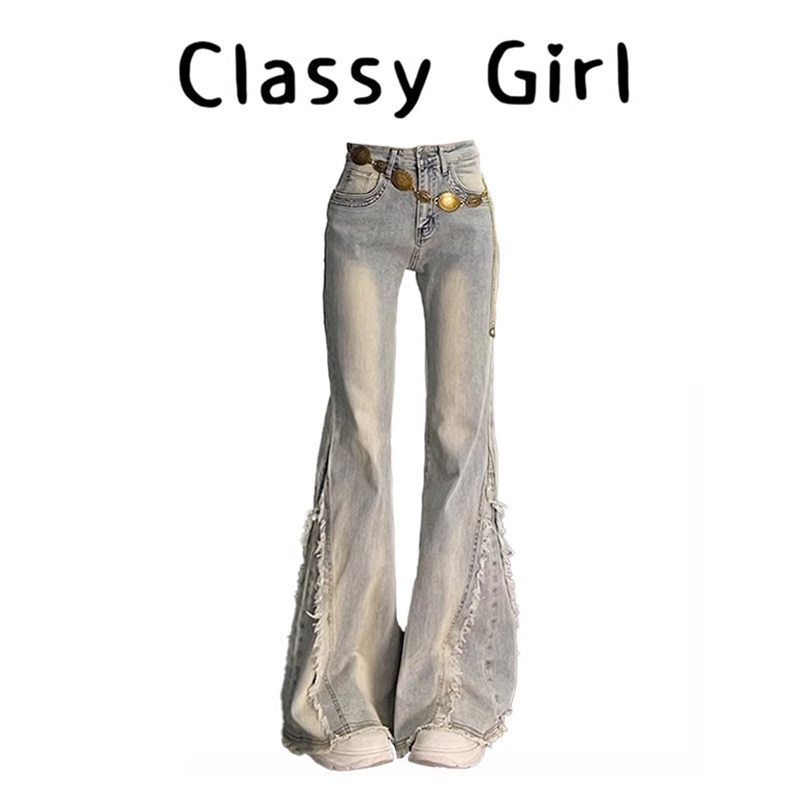 气质显瘦长裤 女2025年秋冬设计感毛边修身 复古辣妹微喇牛仔裤 美式