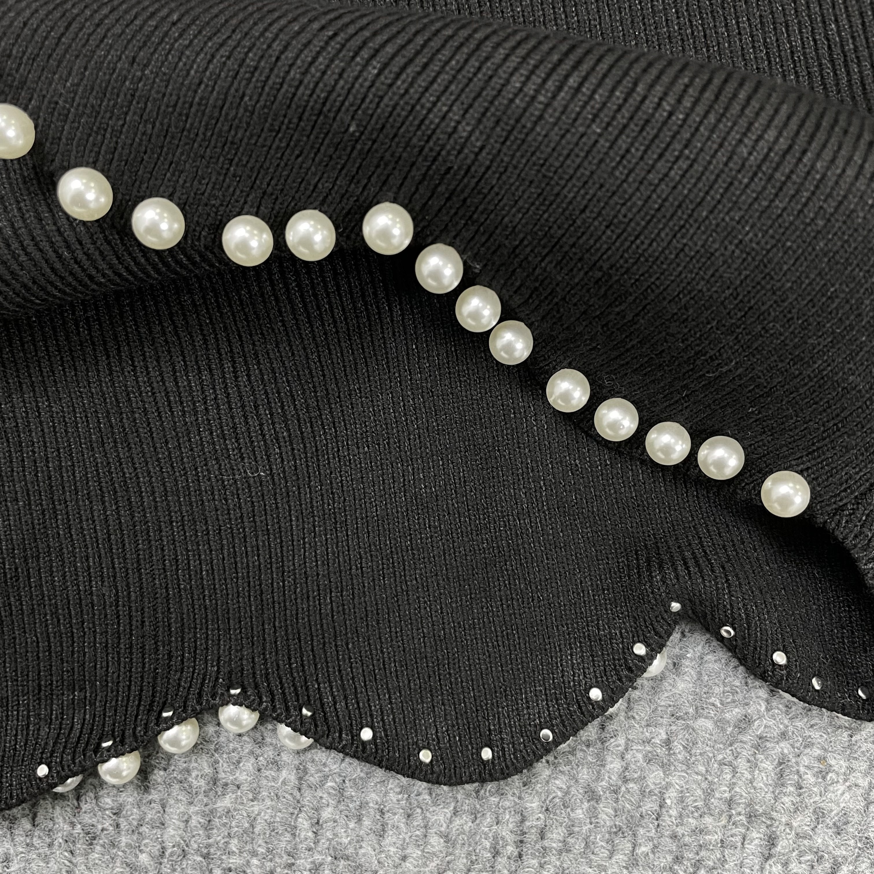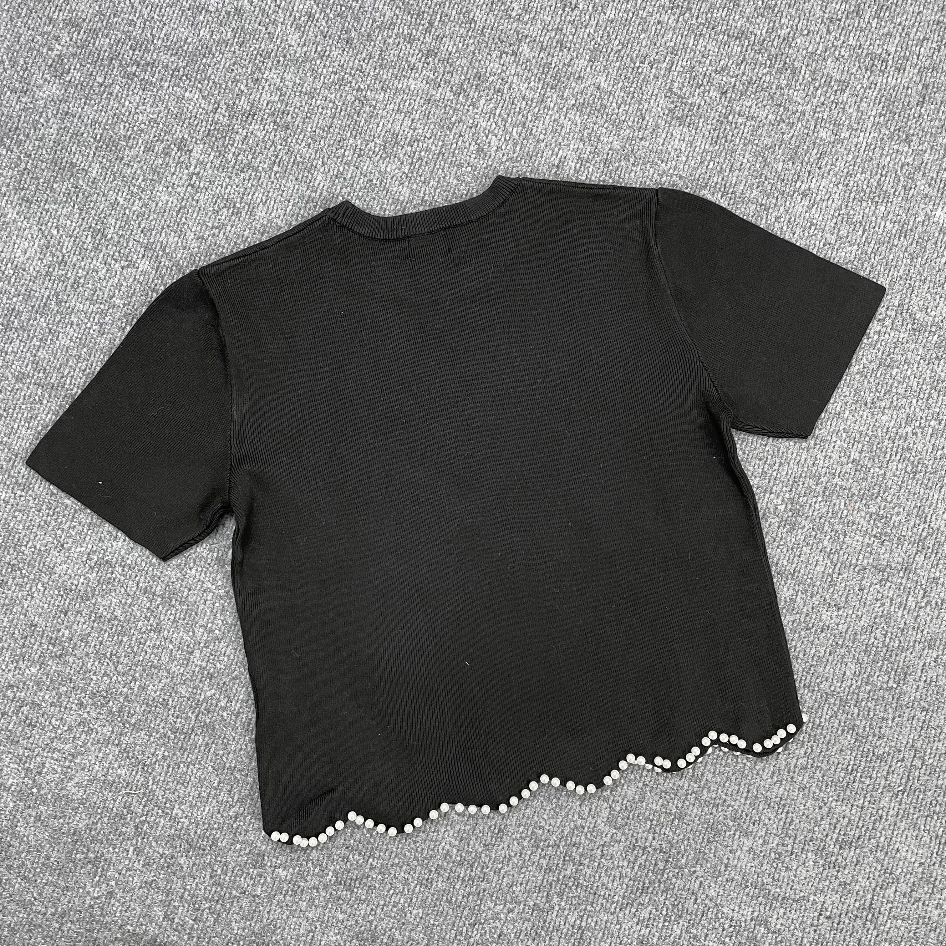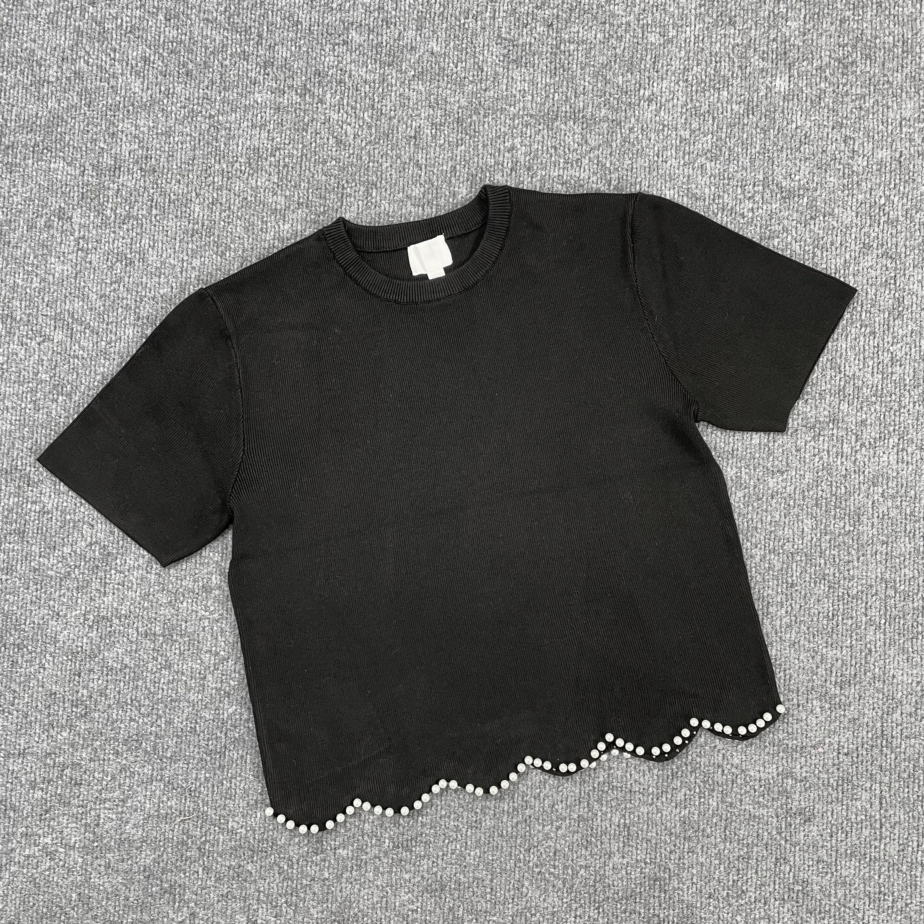 优雅气质显瘦圆领上衣 针织衫 E7097外贸新款 女重工钉珠波浪边短袖