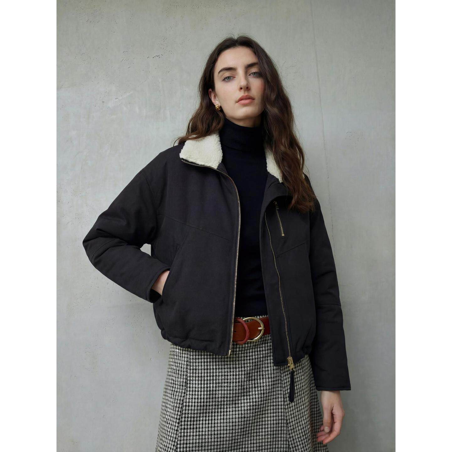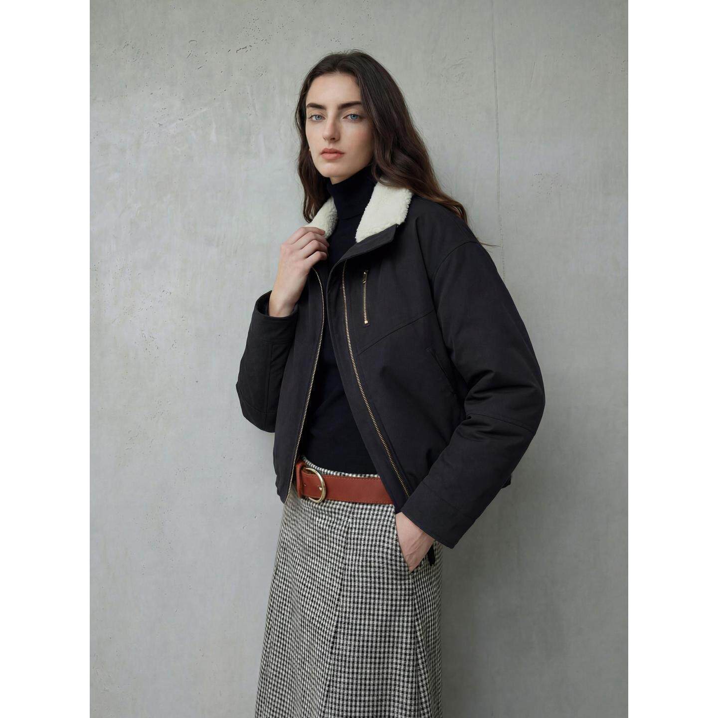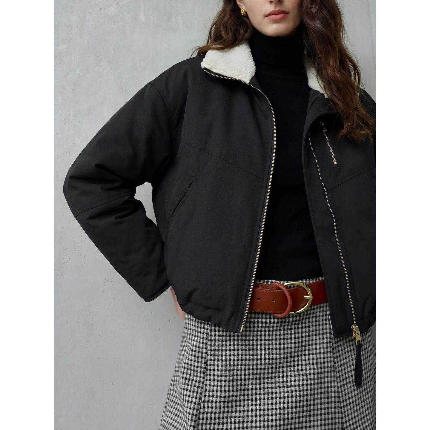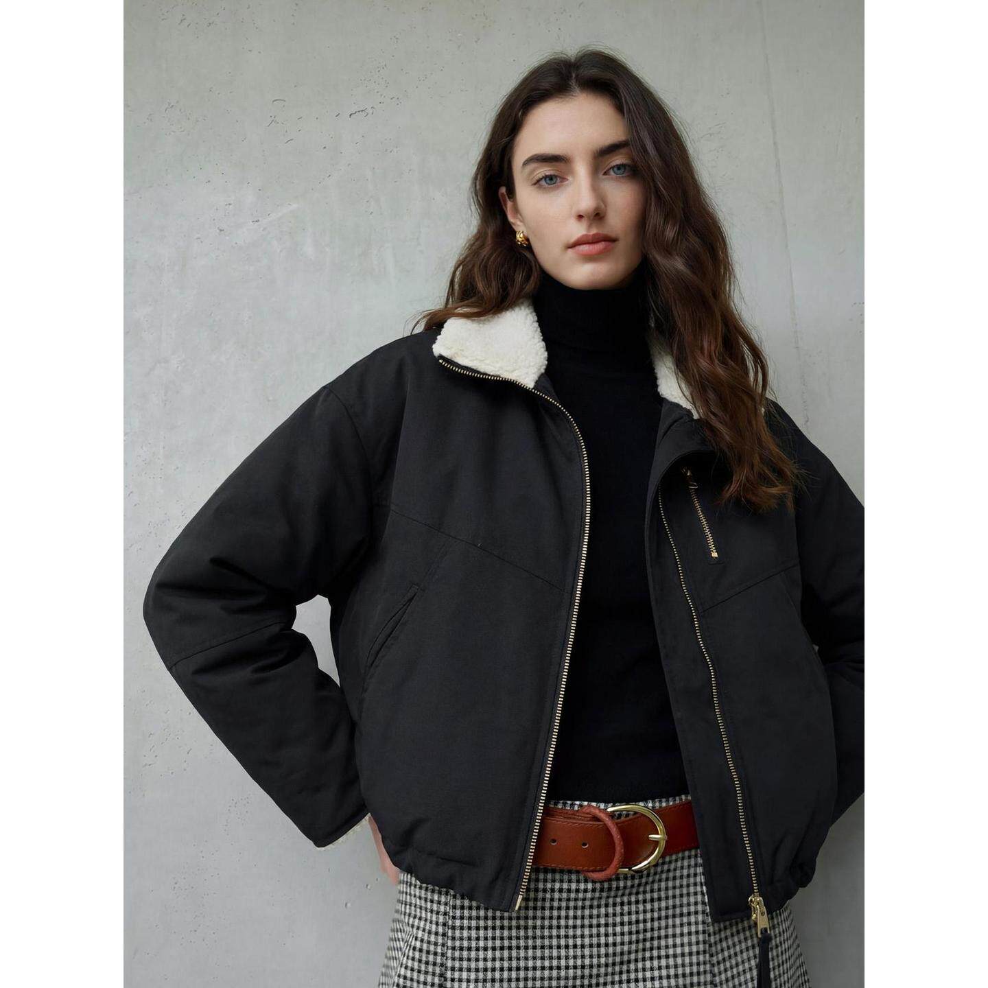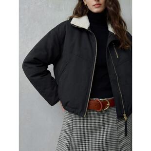 加厚保暖棉衣夹克 百家好黑色毛领拼接棉服外套女春季 Basic House