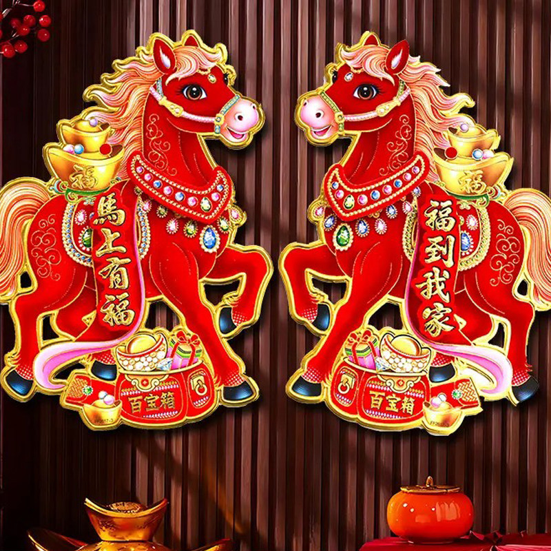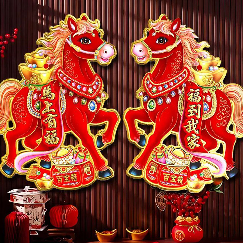 2026新年静电贴马年窗花新款 饰 窗贴过年春节玻璃窗户福字门贴纸装