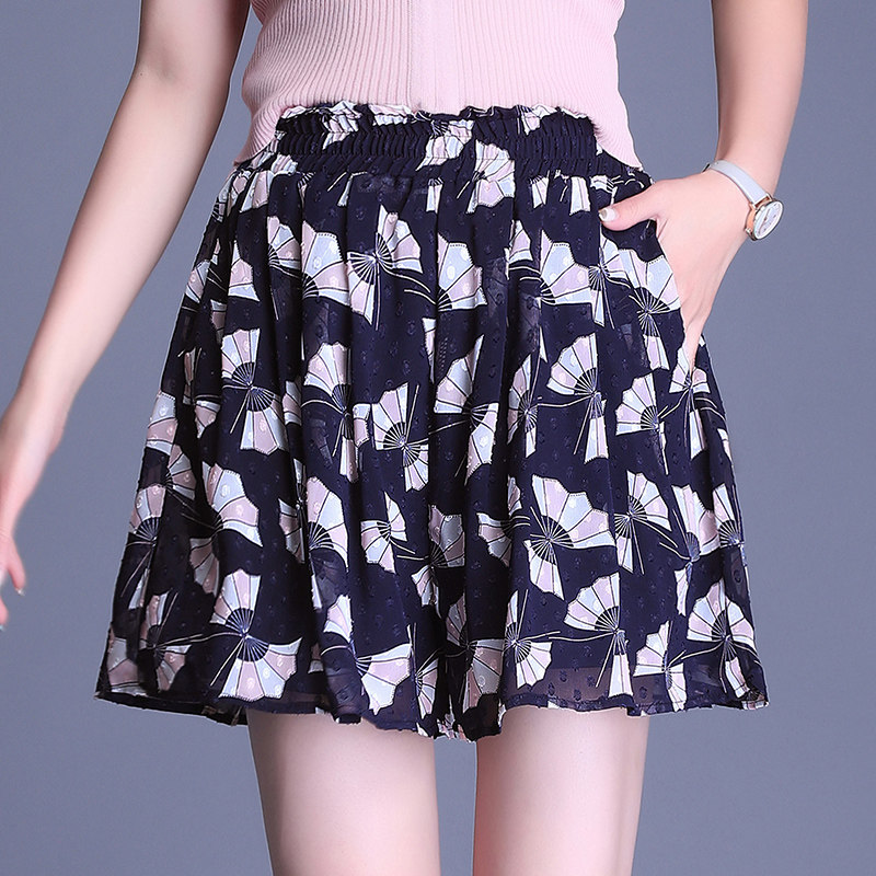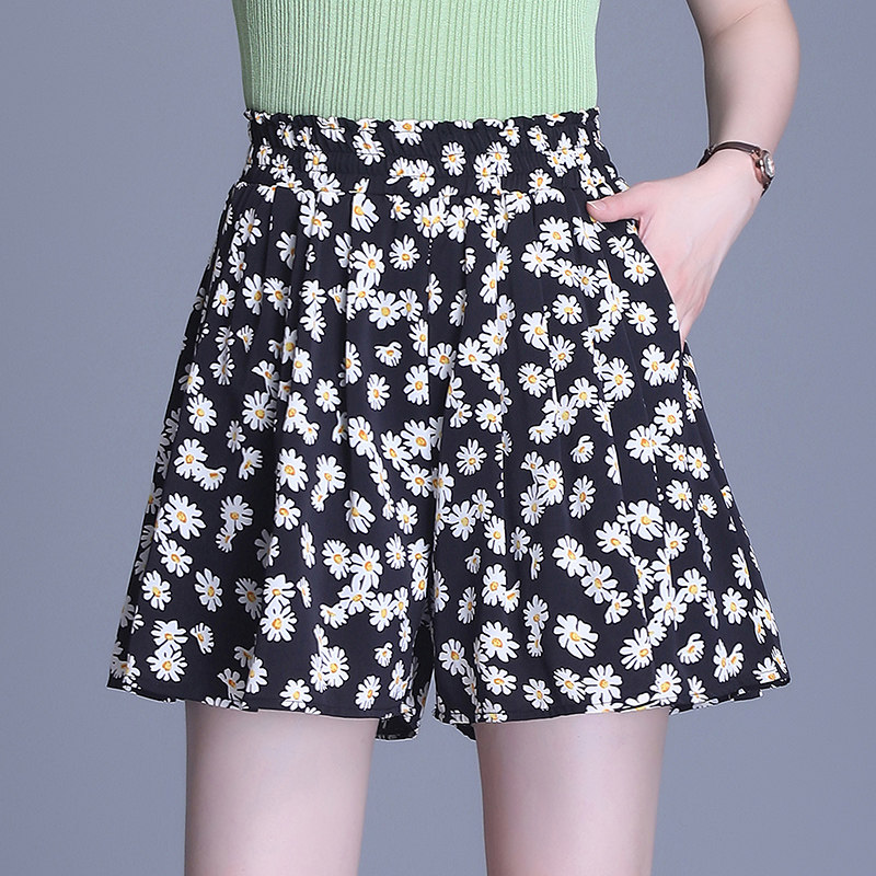 短裤 薄款 子女夏2021新款 裙垂感休闲裙裤 高腰碎花宽松裤 雪纺阔腿裤