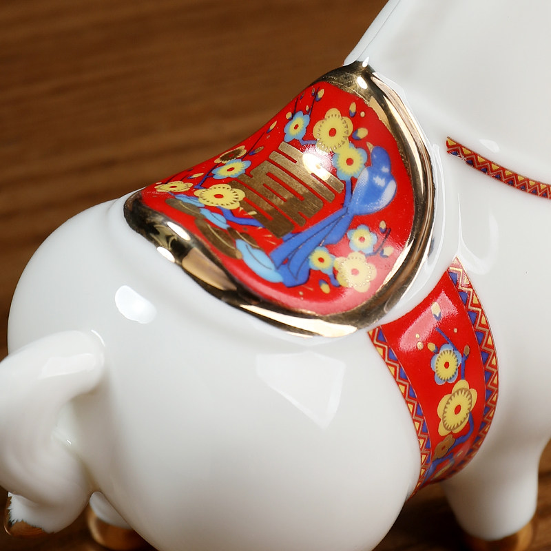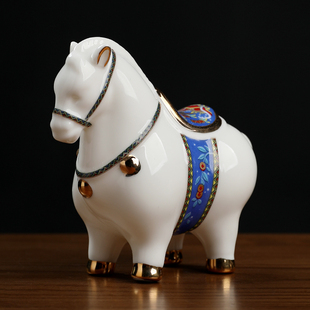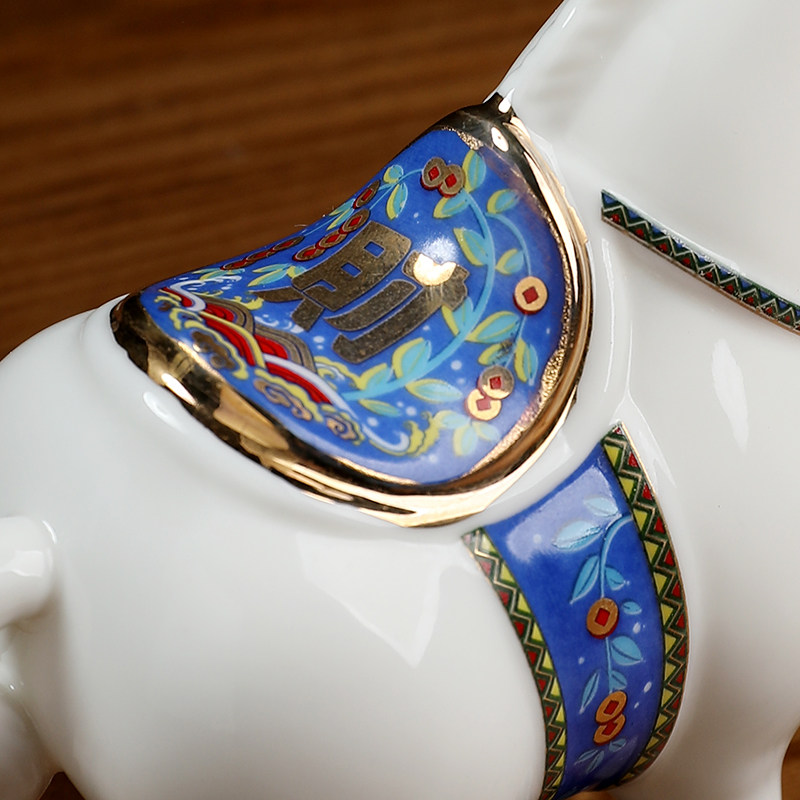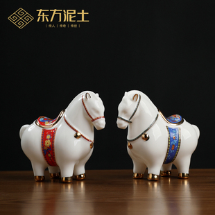 饰饰品小精致红色 办公室桌面唐马装 东方泥土 陶瓷马摆件工艺品马