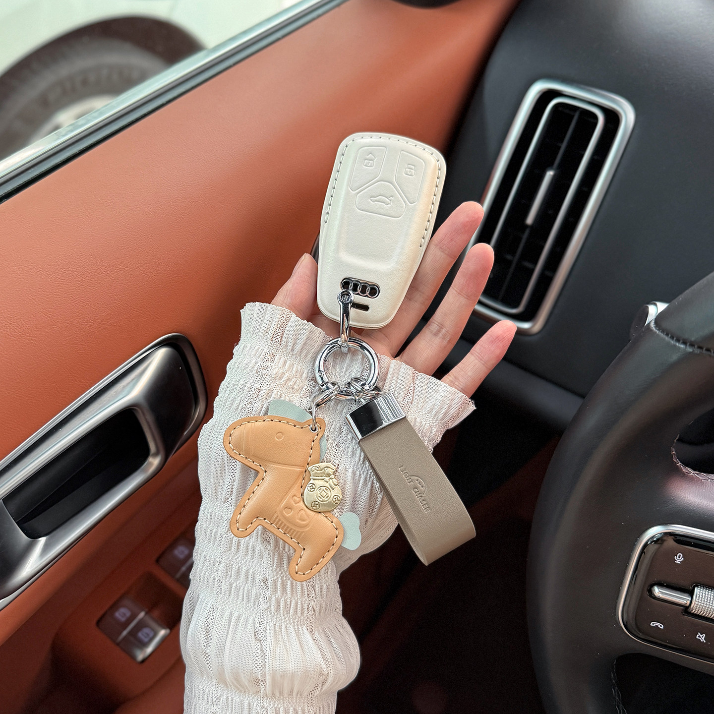 A6L A4车钥匙套A3 Q5L真皮钥匙扣 适用奥迪钥匙套女A4L