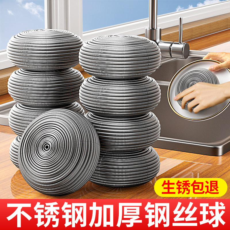 6个大号钢丝球不锈钢清洁球不掉渣去污家用清洁用品洗碗刷锅耐用
