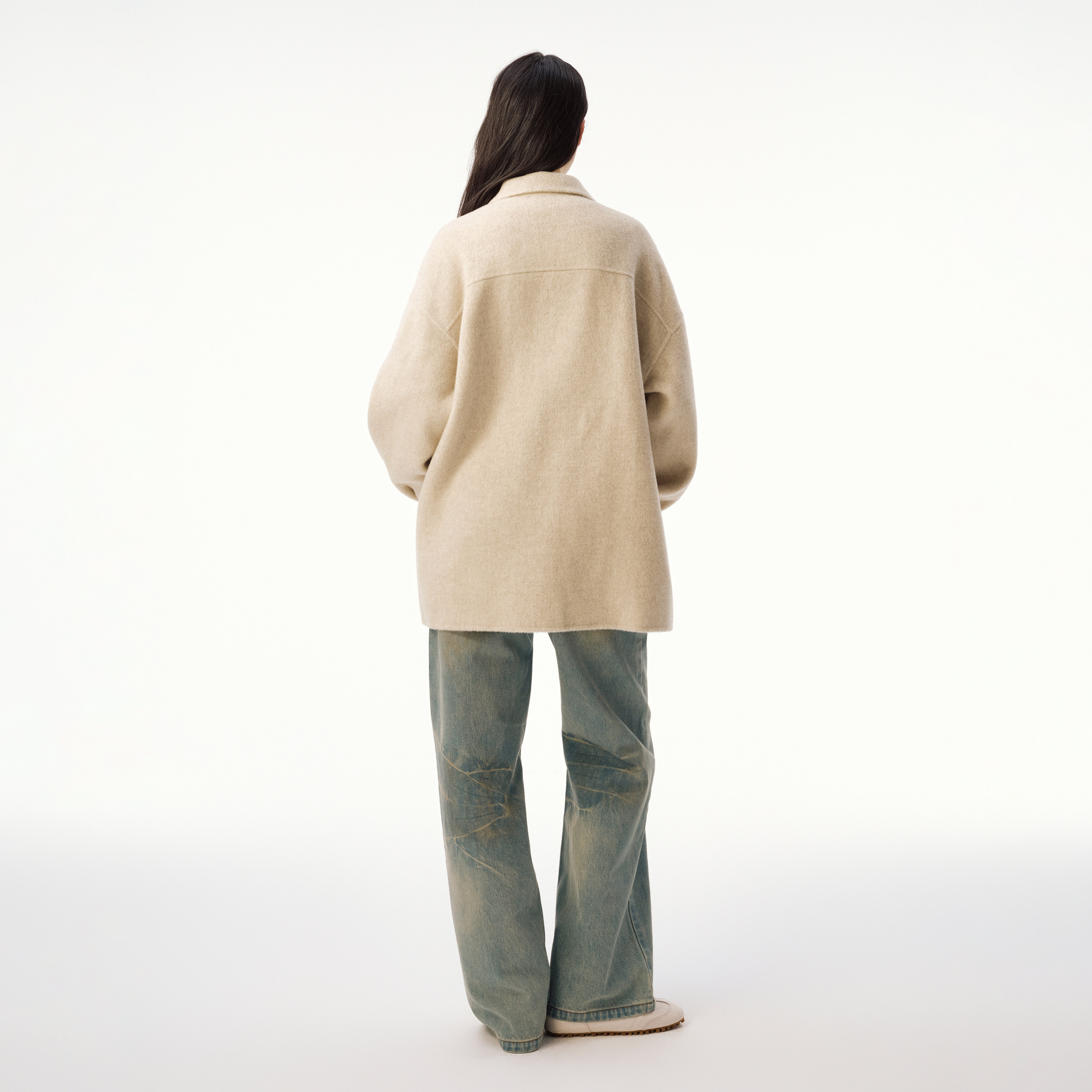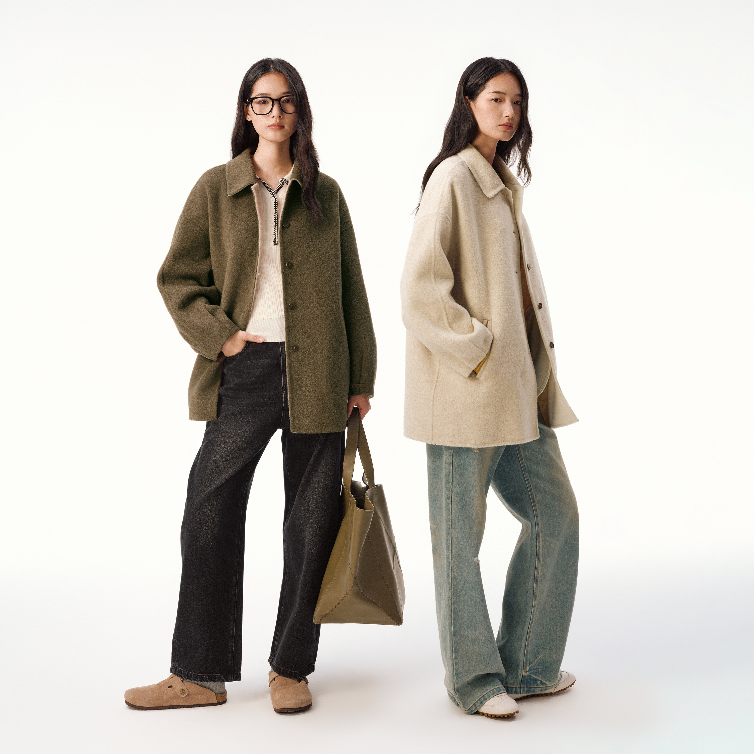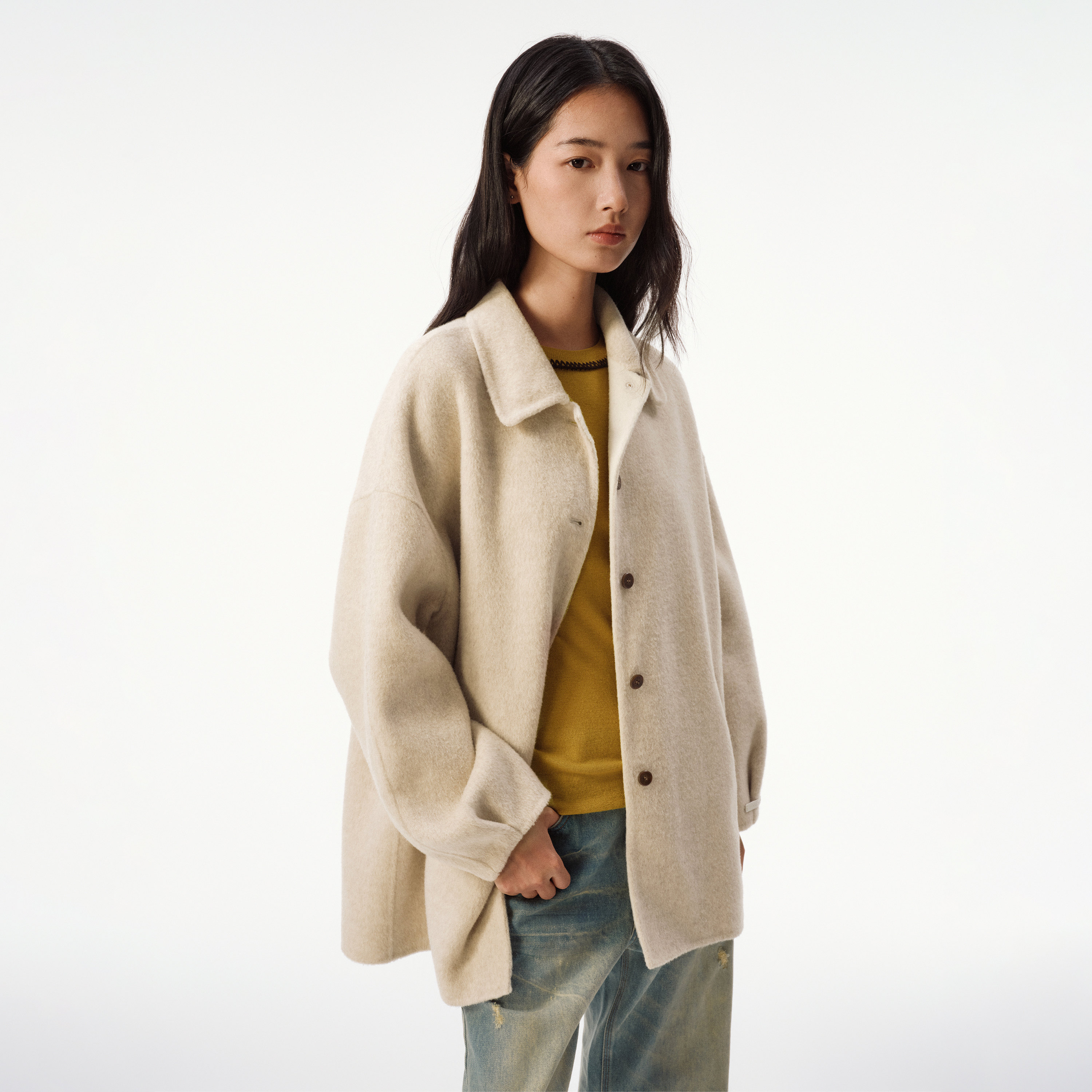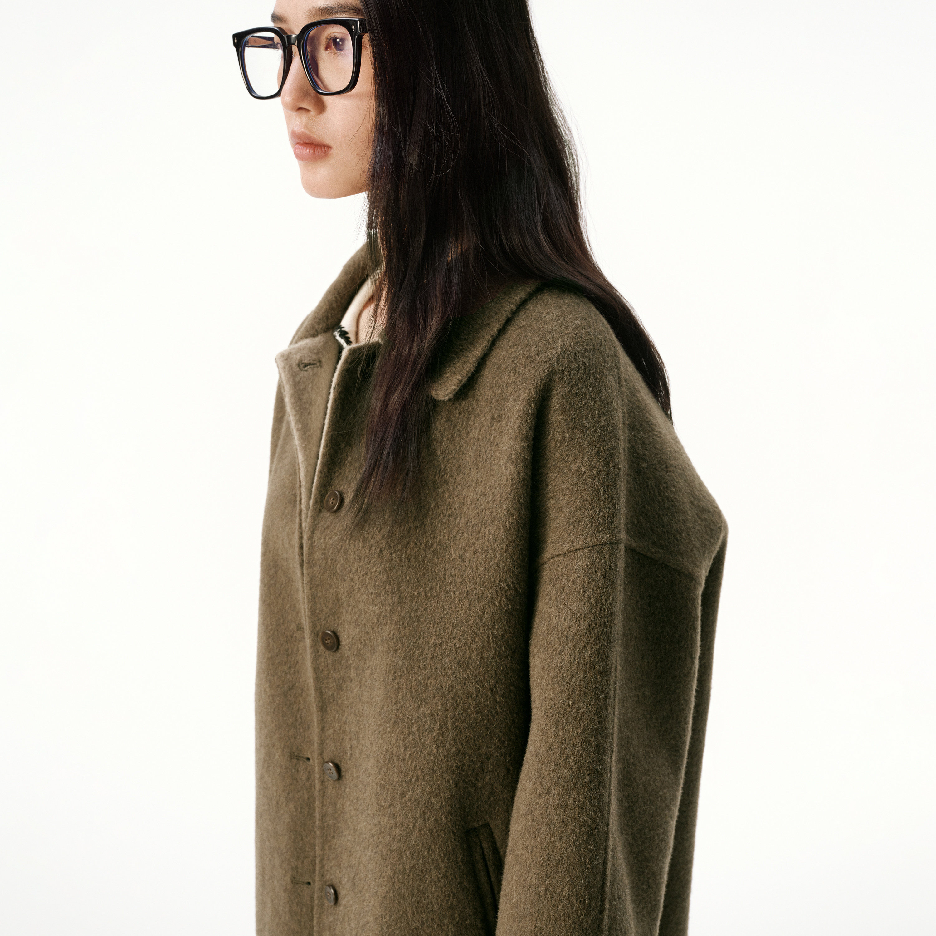 毛呢外套 popchrio立翻领骆驼绒双面呢羊毛大衣中长款 明星同款