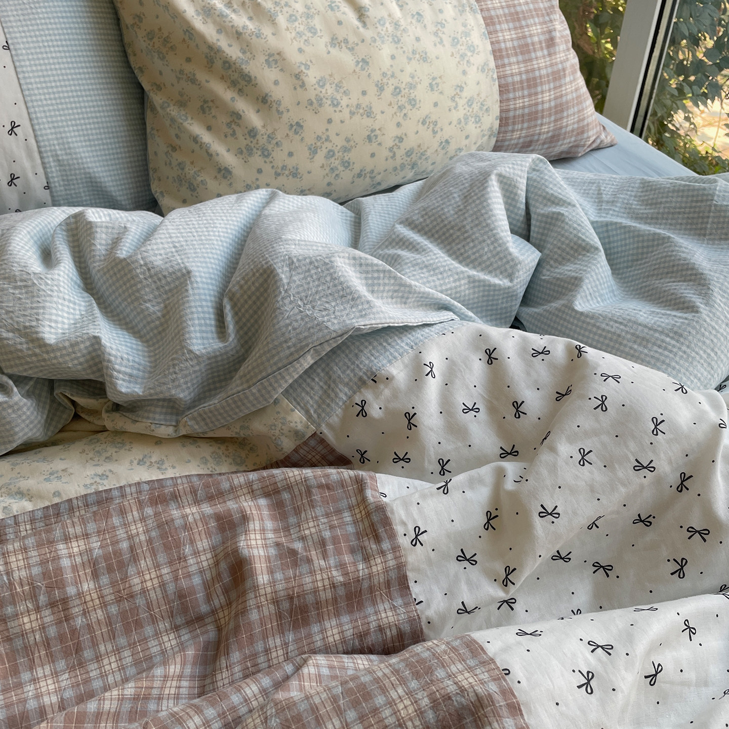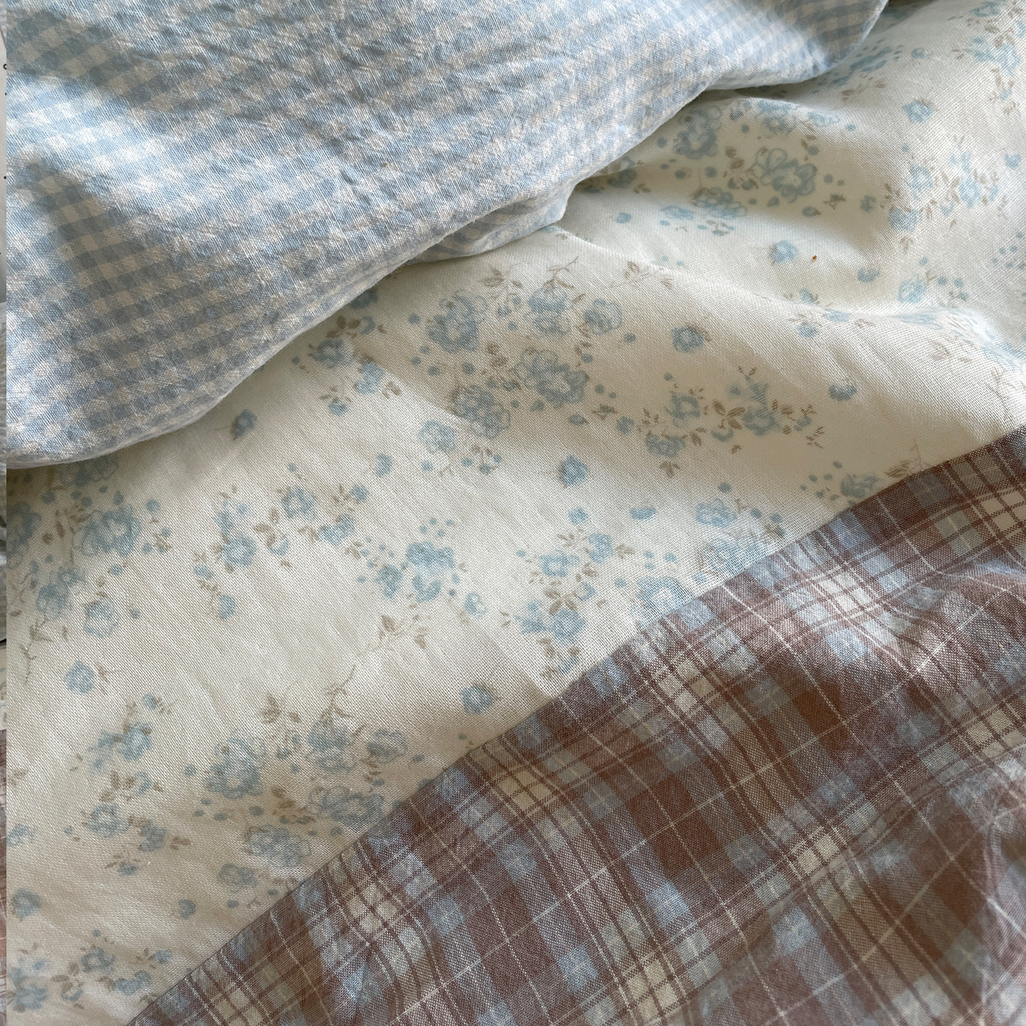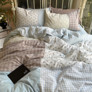 月光集 全棉纯手工拼接床品纯棉格子碎花ins少女心四件套 叁秋
