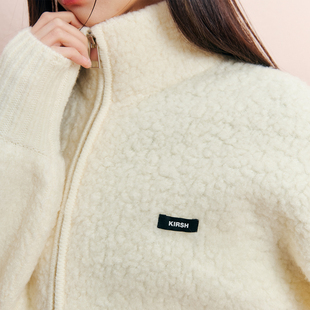 樱桃KIRSH 外套女秋冬保暖毛呢外套 韩系立领拉链绵羊毛针织开衫