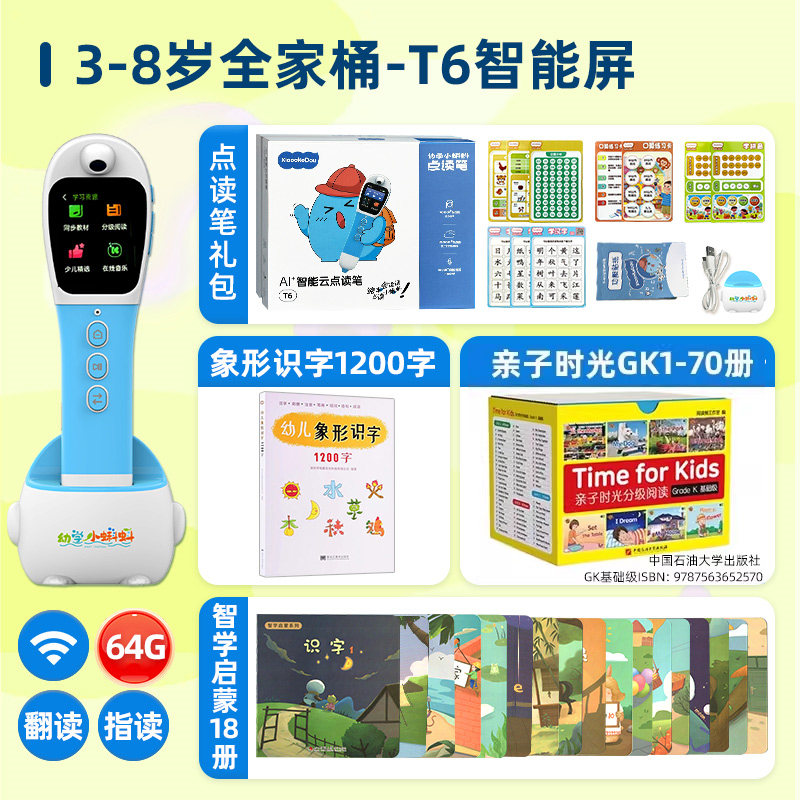 小蝌蚪点读笔官方旗舰店t6幼儿早教3岁以上通用非万能英语raz分级阅读绘本宝宝a8儿童智能阅读幼学毛毛虫达人