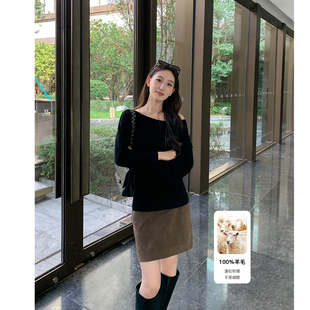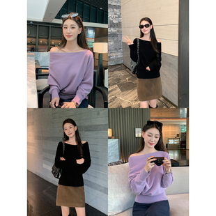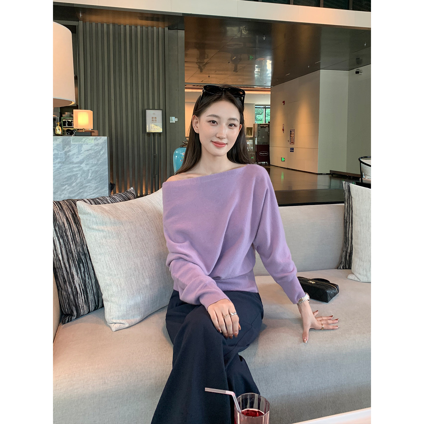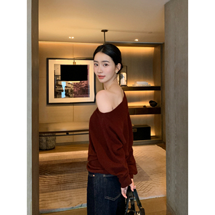 女贵奢修身 100%羊毛不规则斜肩针织衫 露肩上衣 Lin恣意佳人 Maven