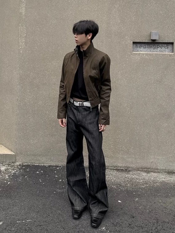 工厂尾货阔腿牛仔裤 设计师线 外贸男装 波浪人字纹肌理 早秋新款