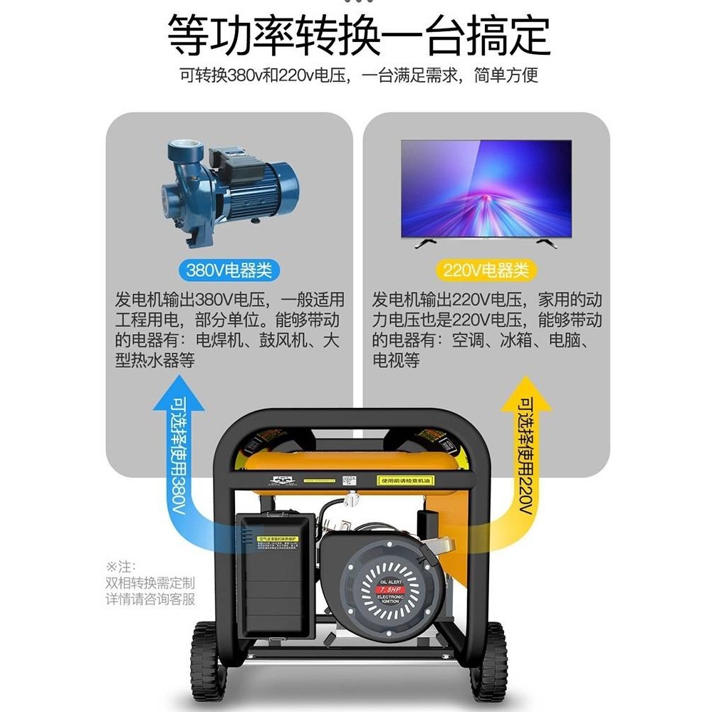 汽油发电机220v家用小型3kw大功率5 8千瓦380V三相户外微型摆摊