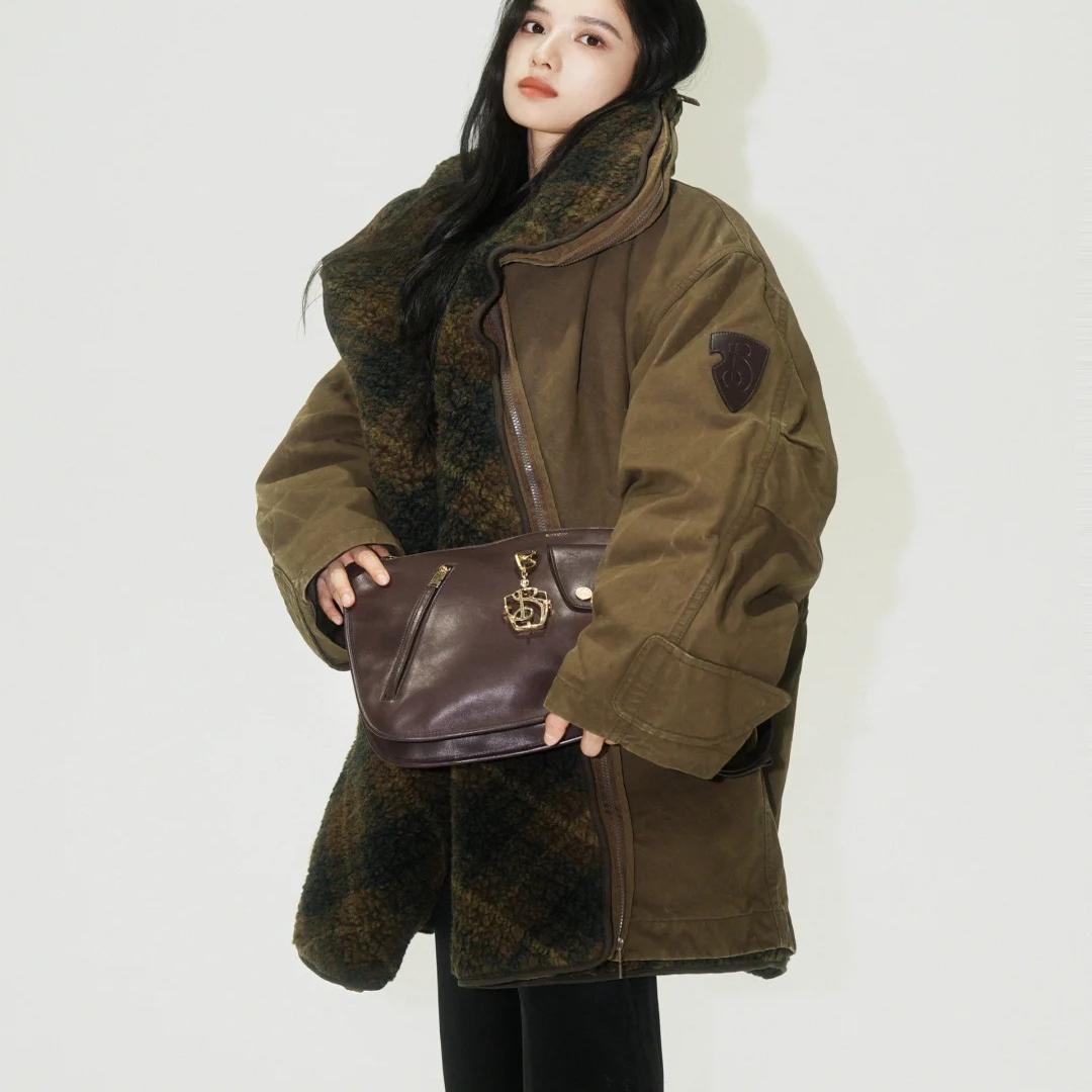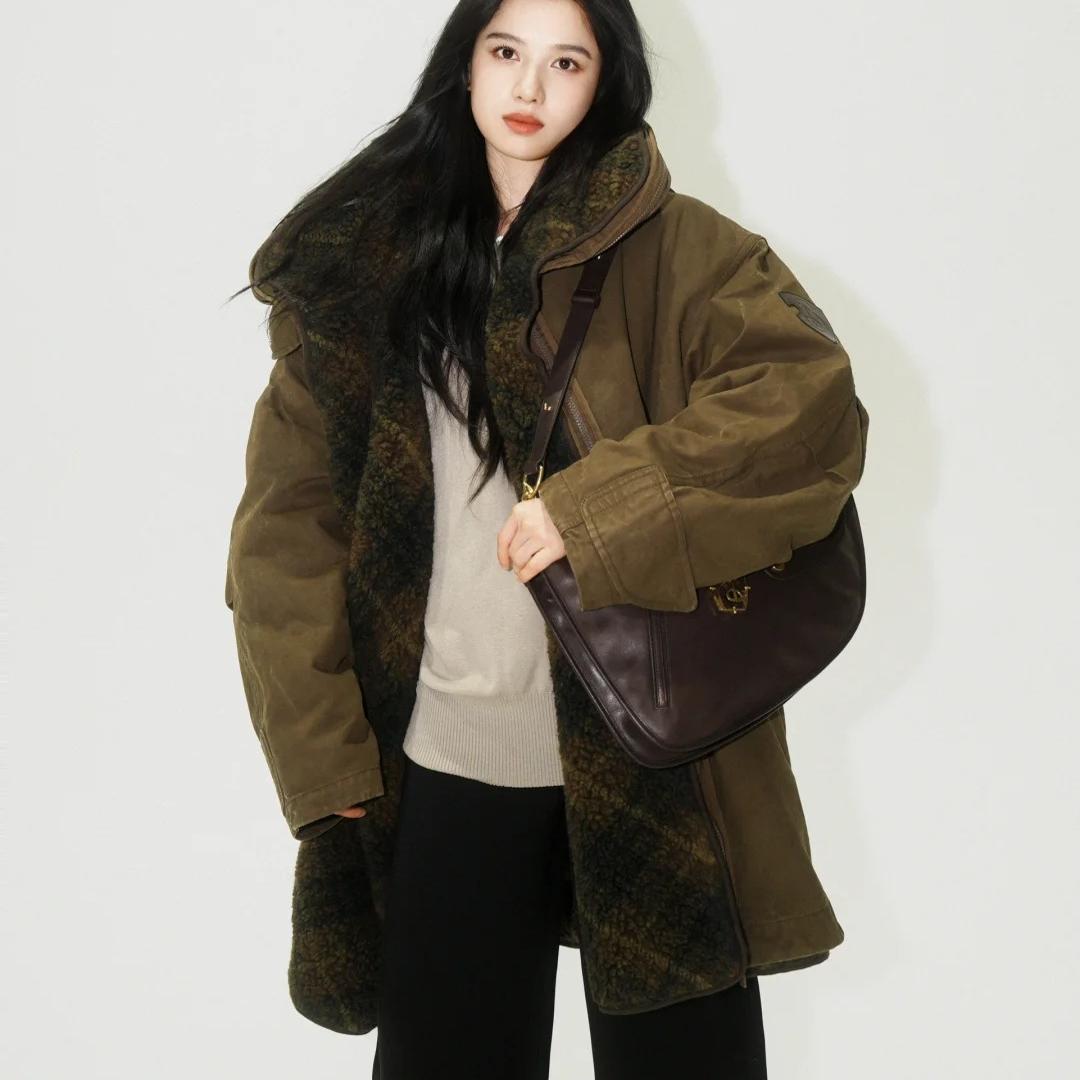 冬加厚工装 毛领羽绒服中长款 骆驼女装 派克服羽绒外套 小红书同款