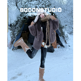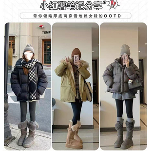 油叽叽 高筒靴子 灰色长筒雪地靴女秋冬加绒厚底中筒保暖毛毛棉鞋