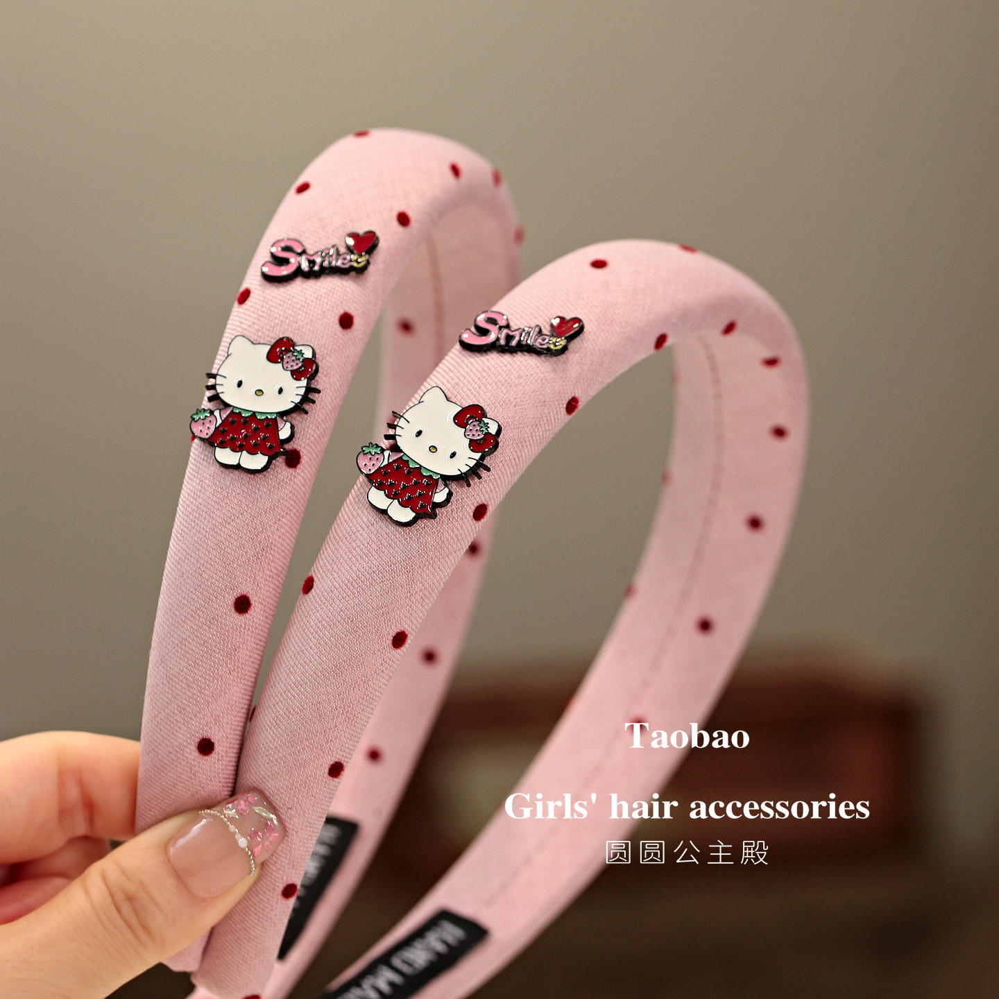 高颅顶植绒波点猫咪儿童发箍头箍小女孩丸子大肠圈宝宝碎发BB夹