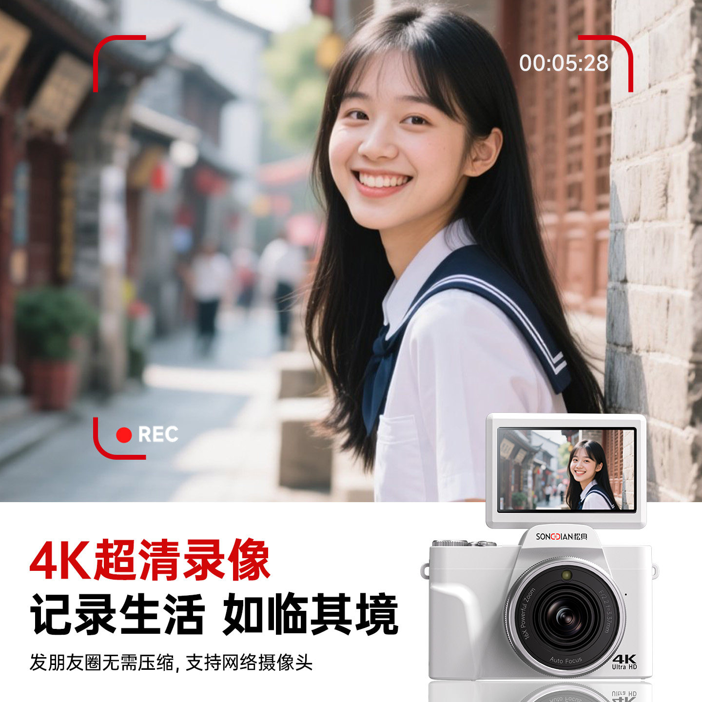 松典DC103W相机学生数码 高清旅游入门翻转自拍摄像vlog专用替ccd
