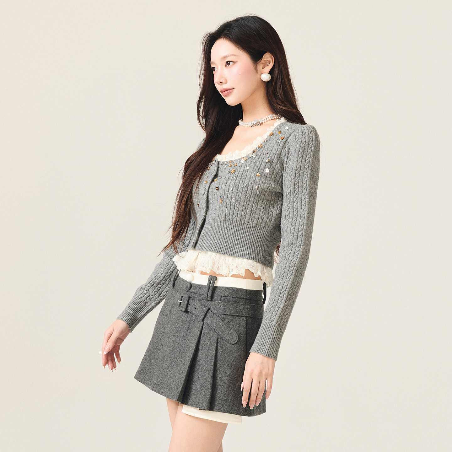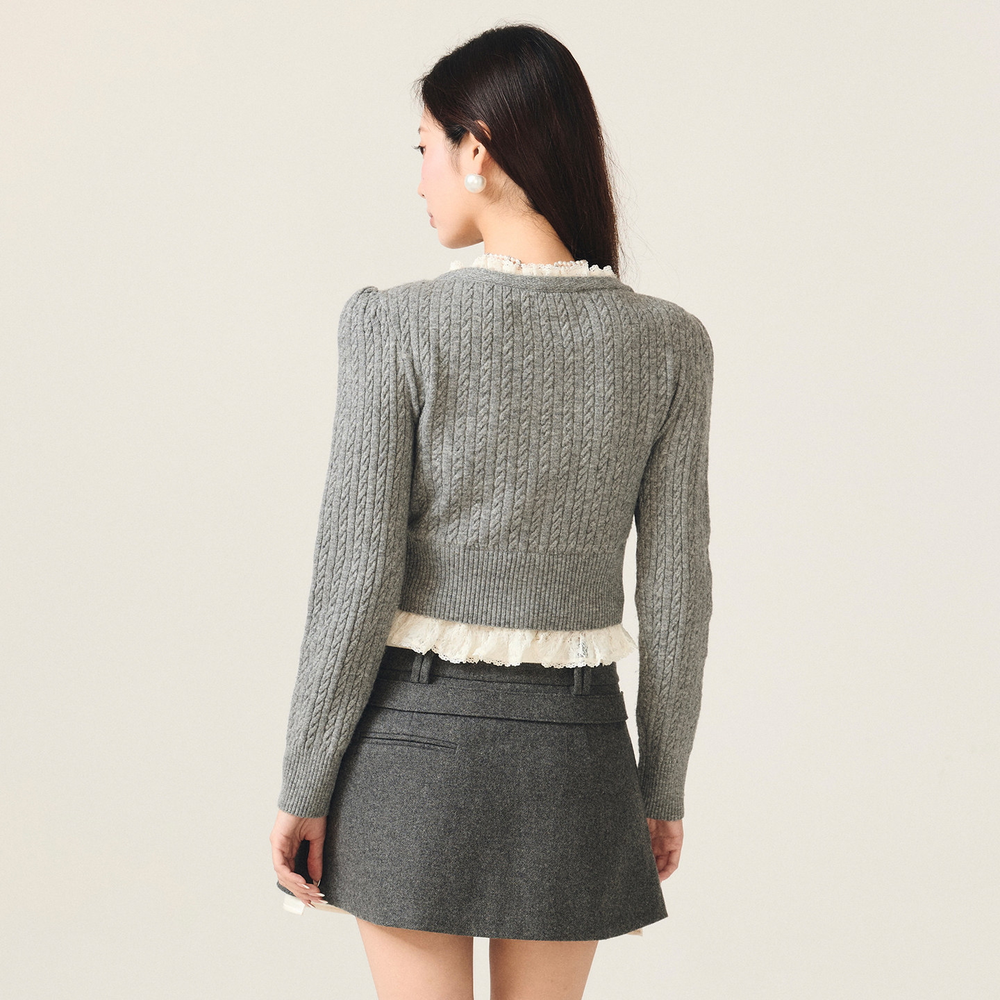 RTIMFD cleanfit宽松 老钱风深V领假两件毛衣氛围感休闲纽扣针织衫