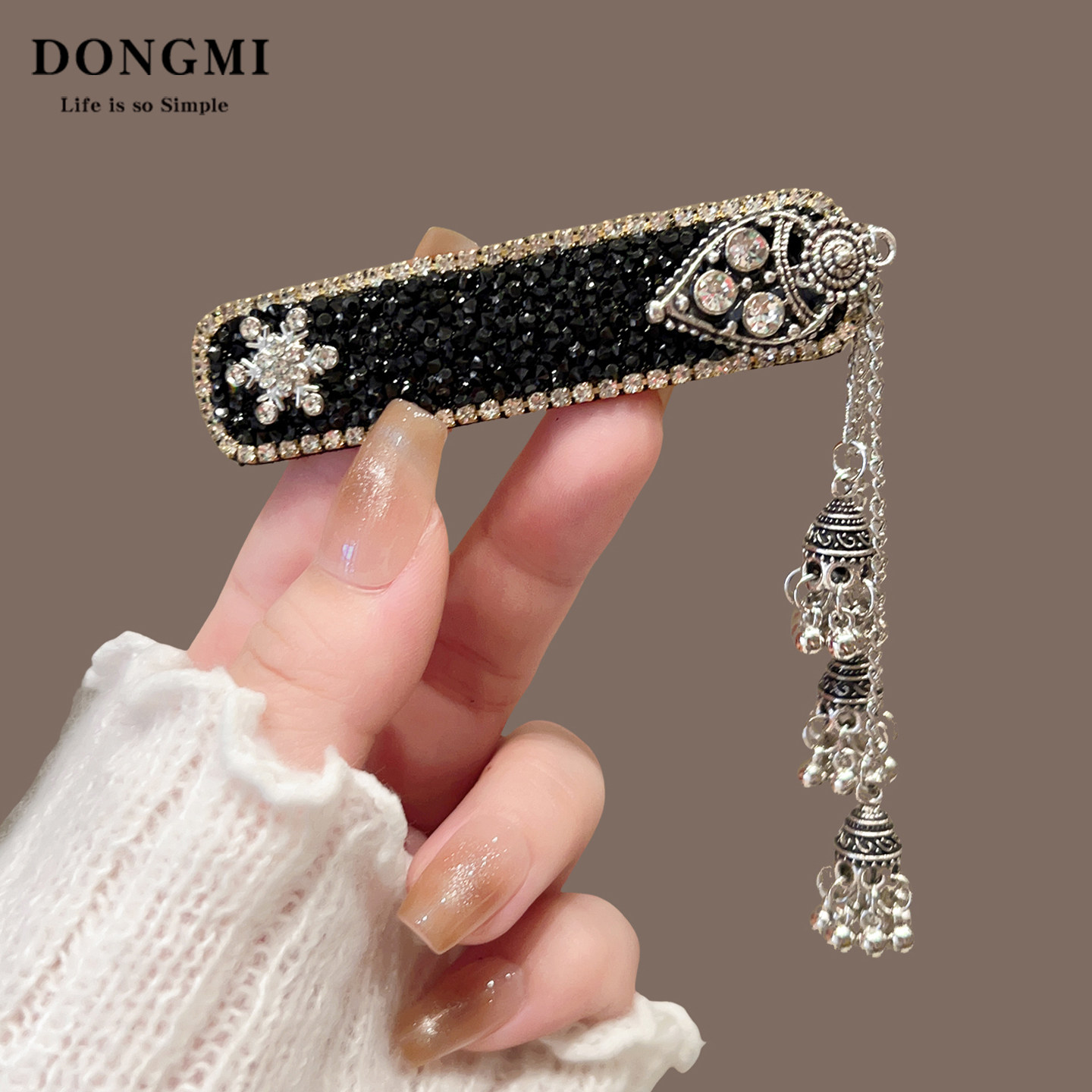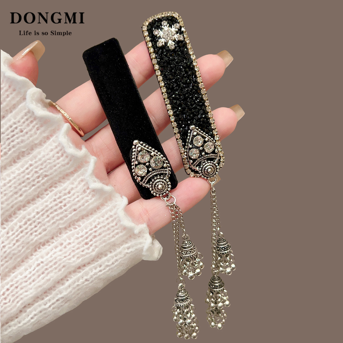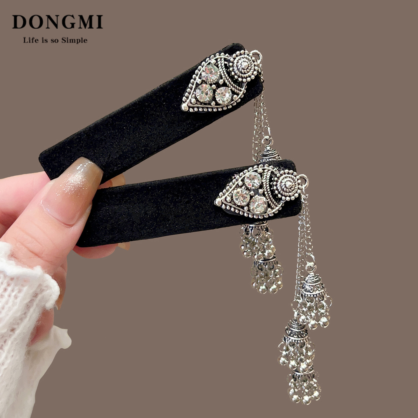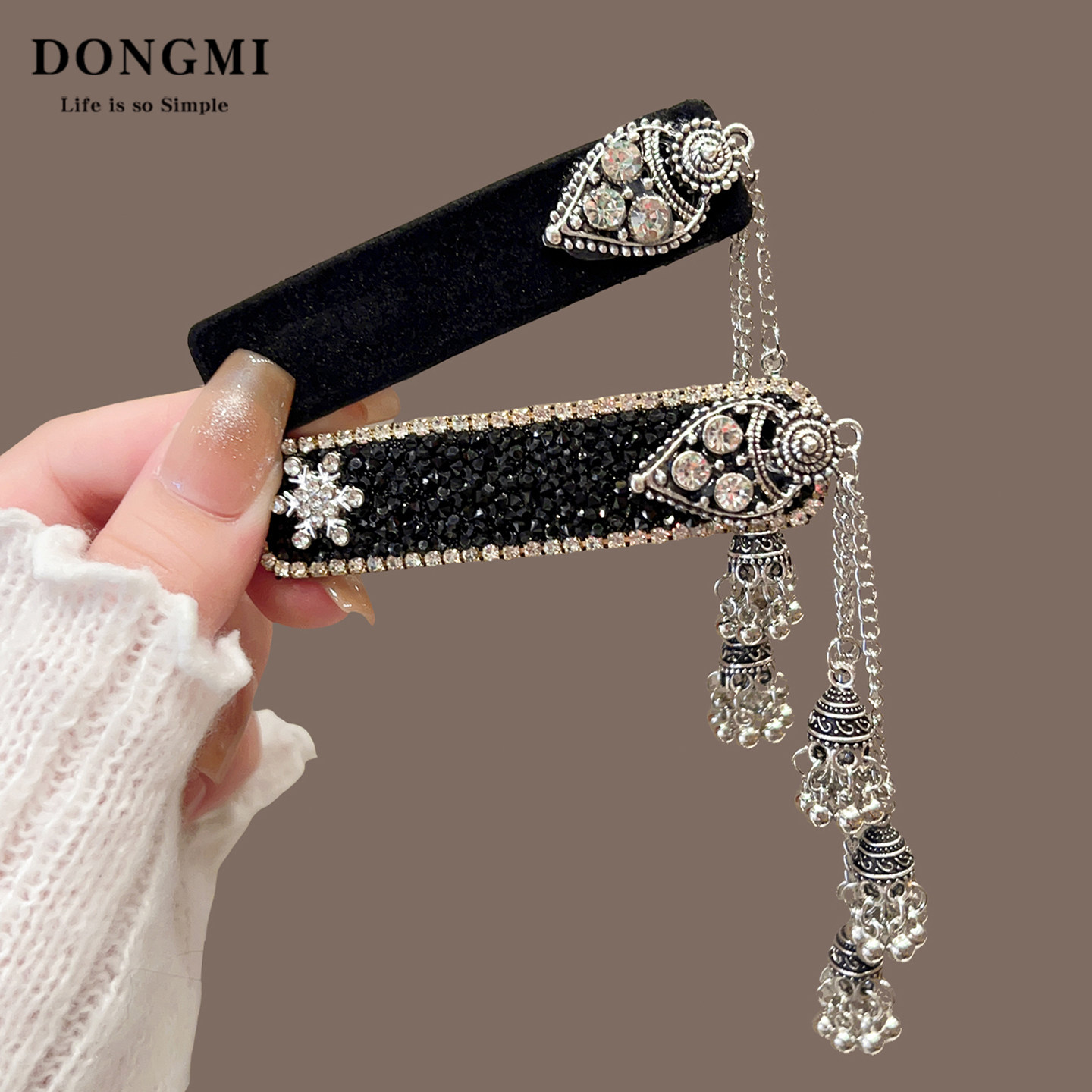 新中式 高端苗疆民族风侧边刘海夹头饰 植绒流苏铃铛发夹女2025新款