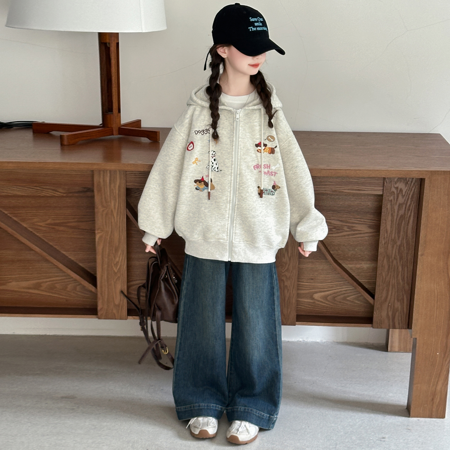 女童秋冬休闲外套2025新款 棉衣服 洋气加厚连帽卫衣初中生女孩开衫