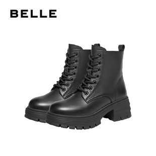 百丽女靴子超软羊皮瘦瘦靴厚底英伦风马丁靴女加绒短靴3N140DD4