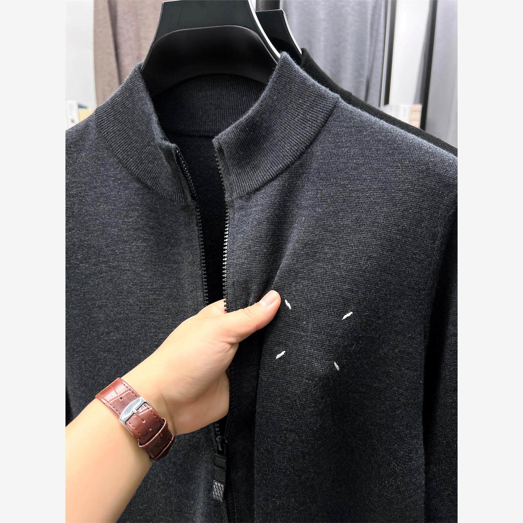 开衫 485克加厚拉链羊毛衫 外套男针织毛 100%精纺羊毛 保罗高端