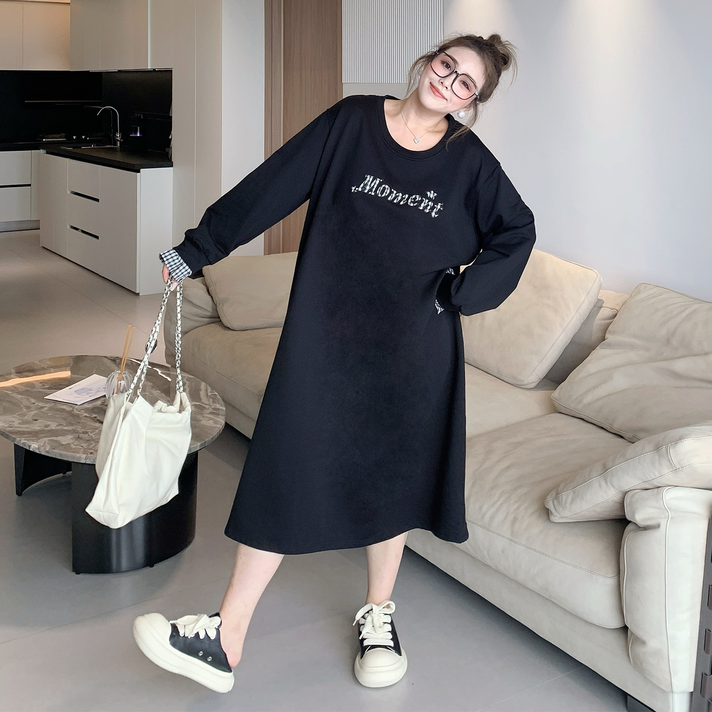 显瘦性感包臀小黑裙子 针织打底连衣裙女春秋冬新款 大码 胖妹妹长袖