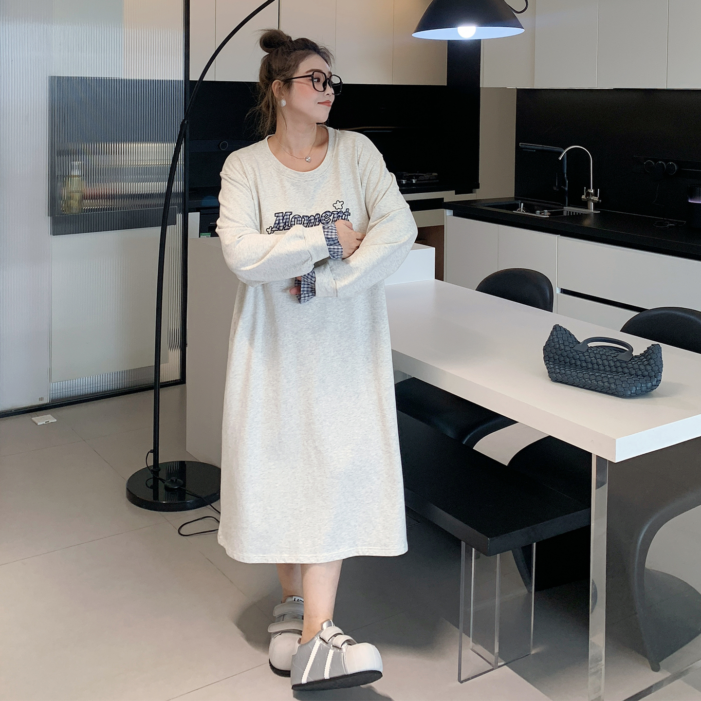 过膝毛衣裙子 长款 吴童自制 灰色慵懒风针织连衣裙女秋冬韩系大码