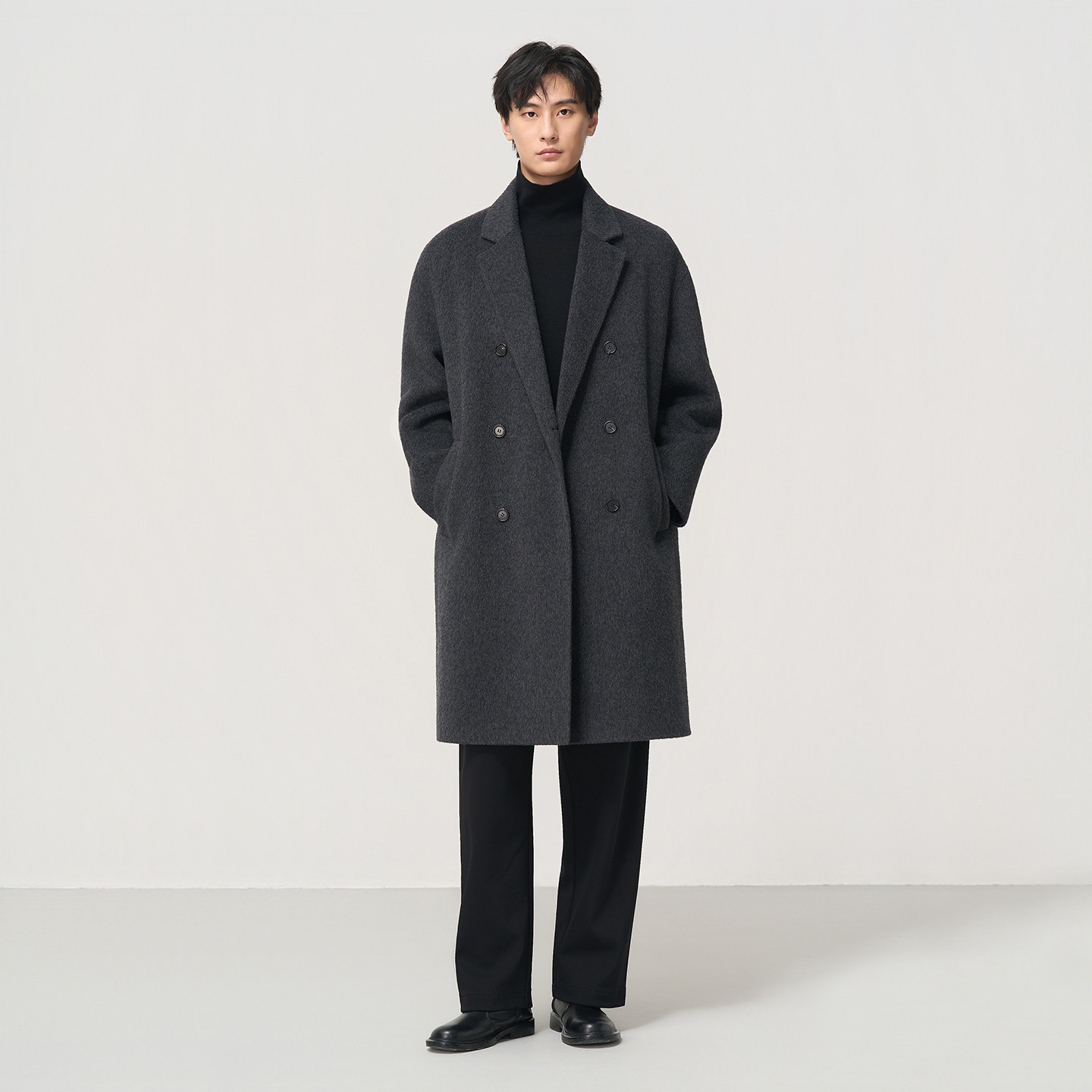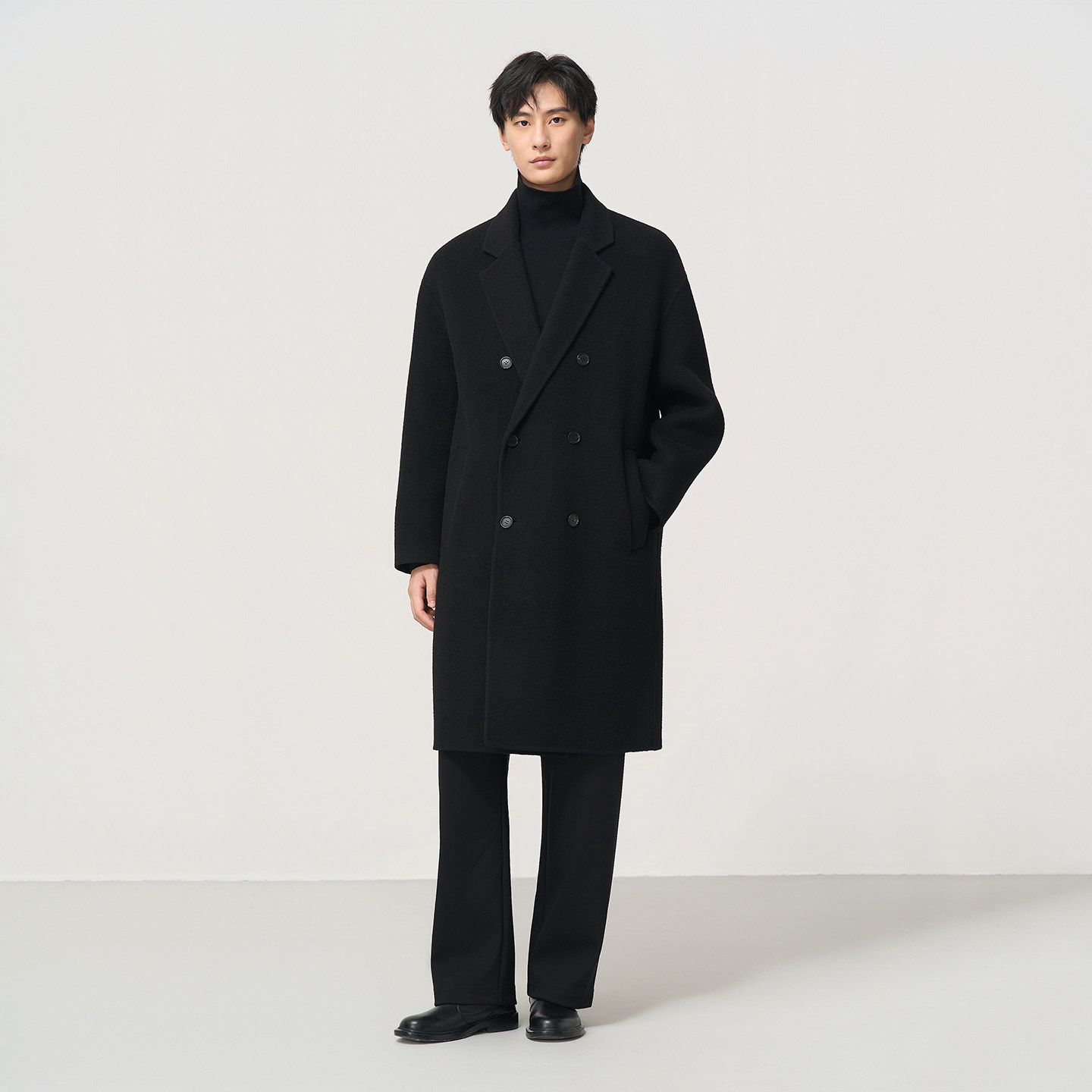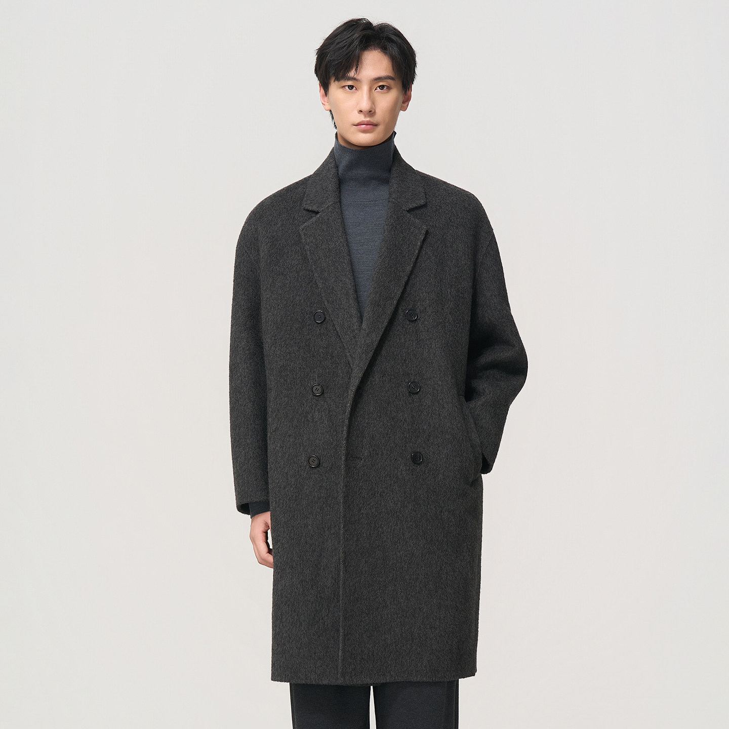 宽松外套 CULTUM秋冬双排扣毛呢大衣男过膝长款 900g重双面羊毛