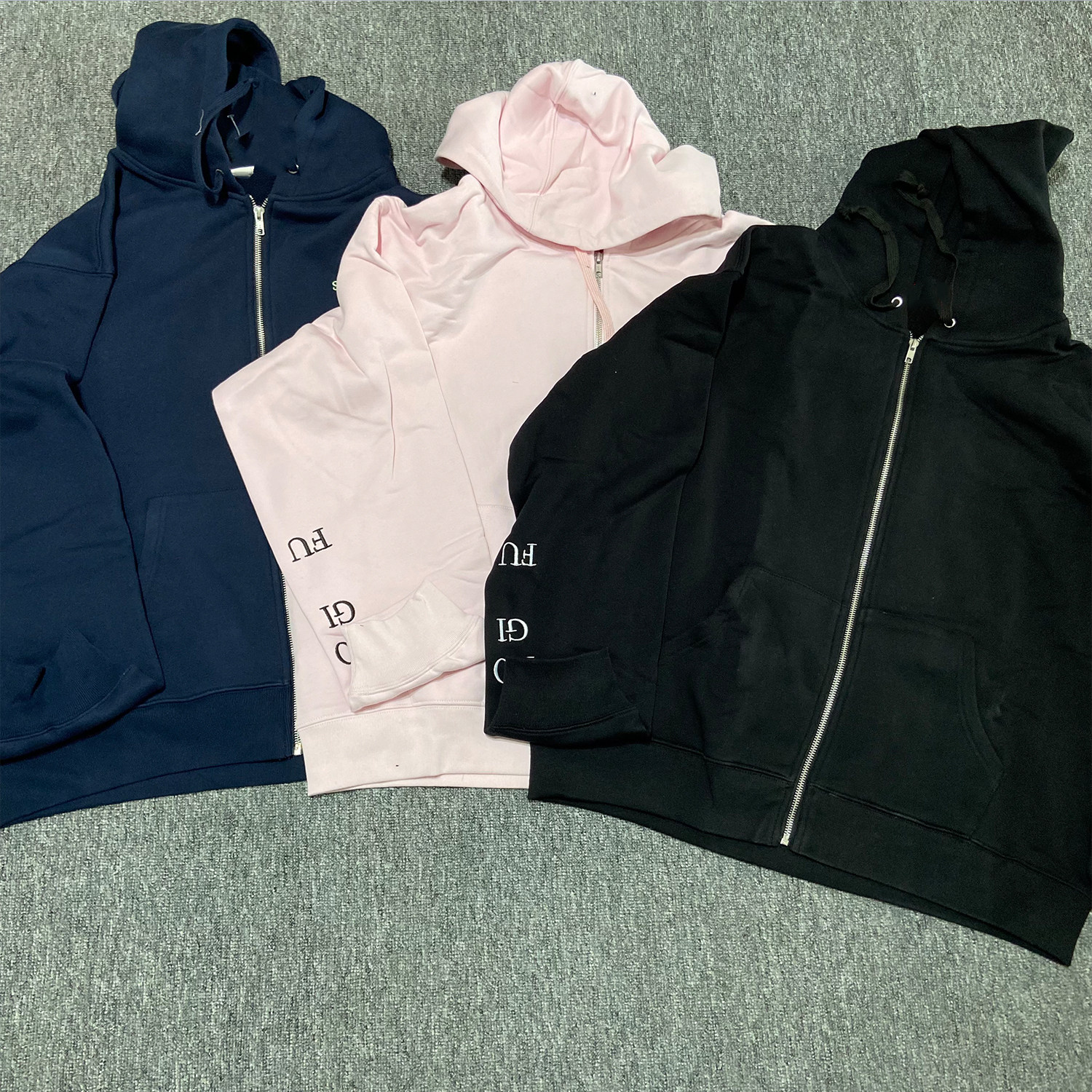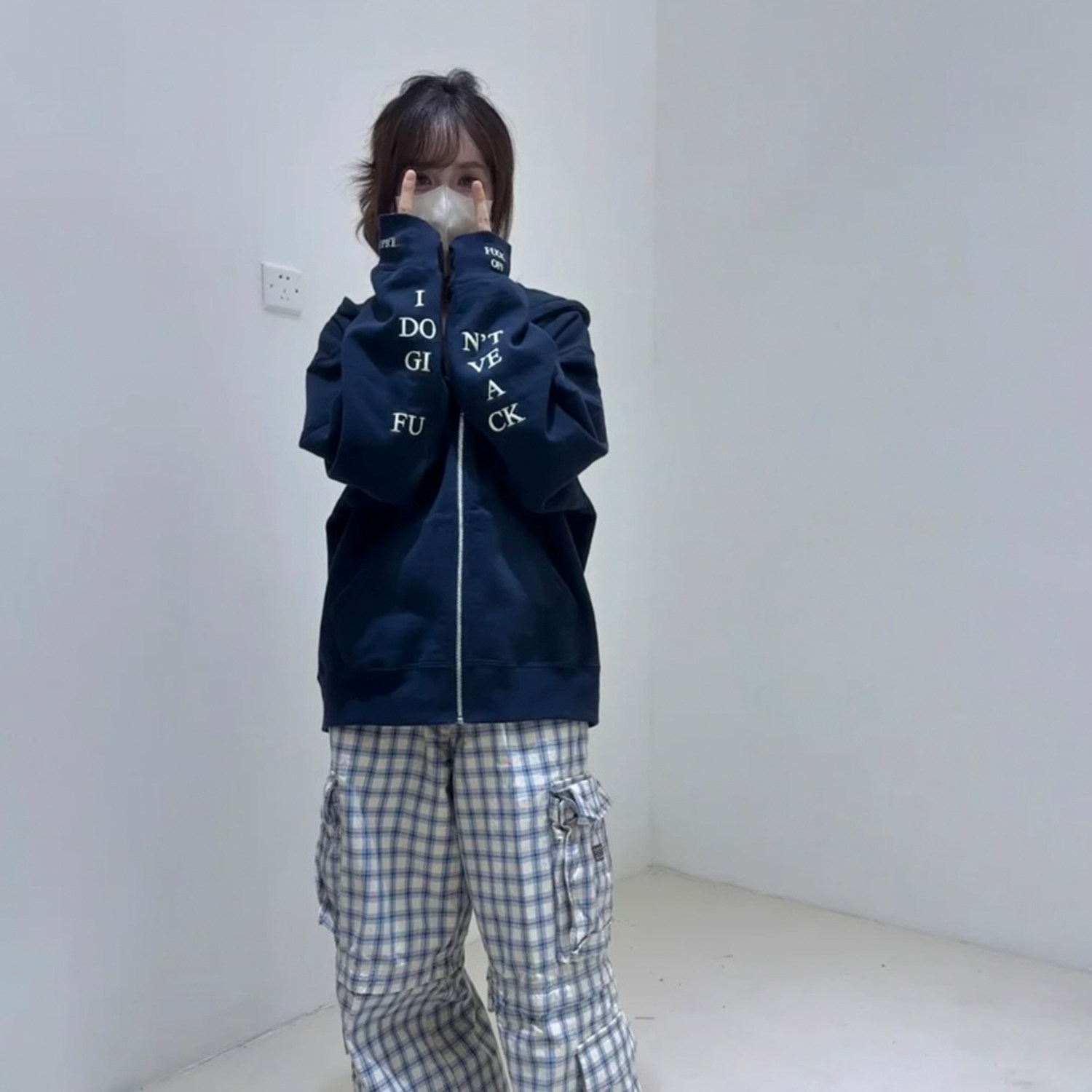 现货 25FW ZIP HOODED脏话刺绣连帽薄绒棉卫衣男女 IDGAF 对版