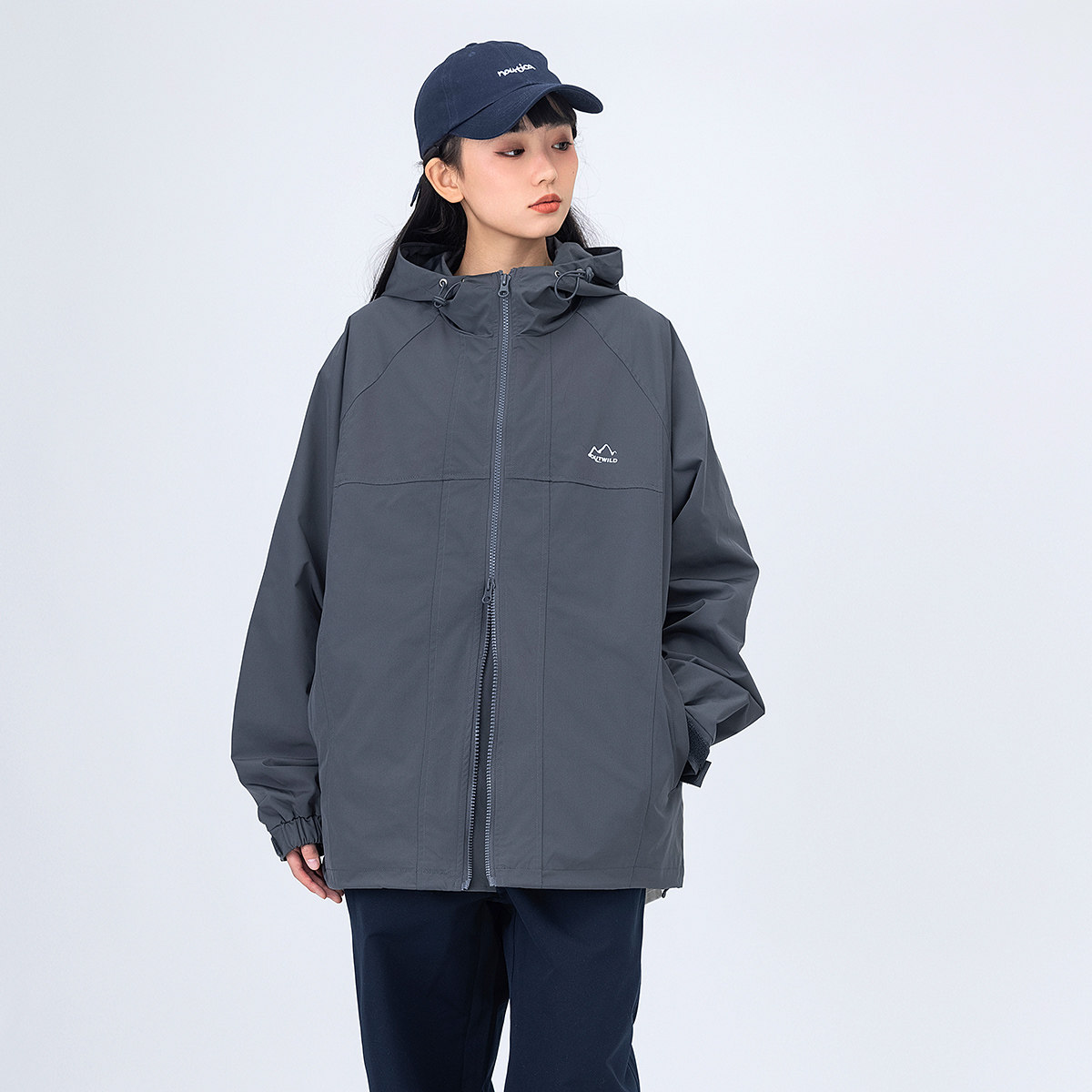 秋季 宽松连帽夹克日系外套潮 山系印花户外防泼水上衣