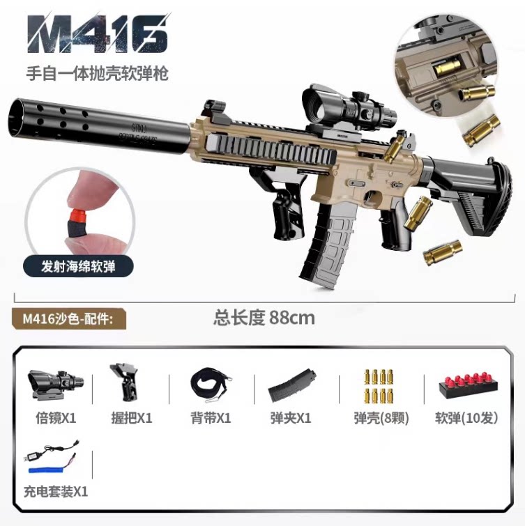 三角洲行动同款 枪自动电动连发男孩儿童玩具M416手自一体水晶突击