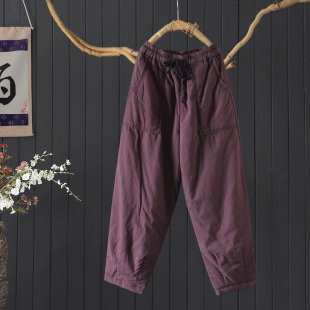 靴裤 宽松文艺大口袋夹棉加厚长裤 萝卜裤 内衬棉裤 冬 女100%棉一体式