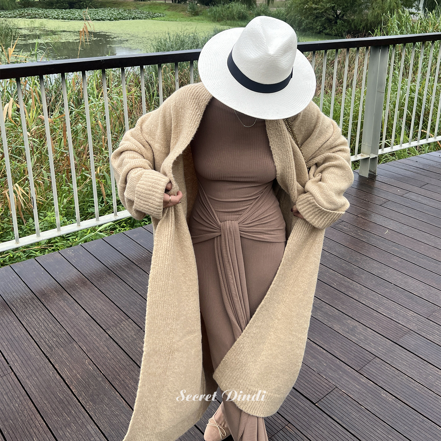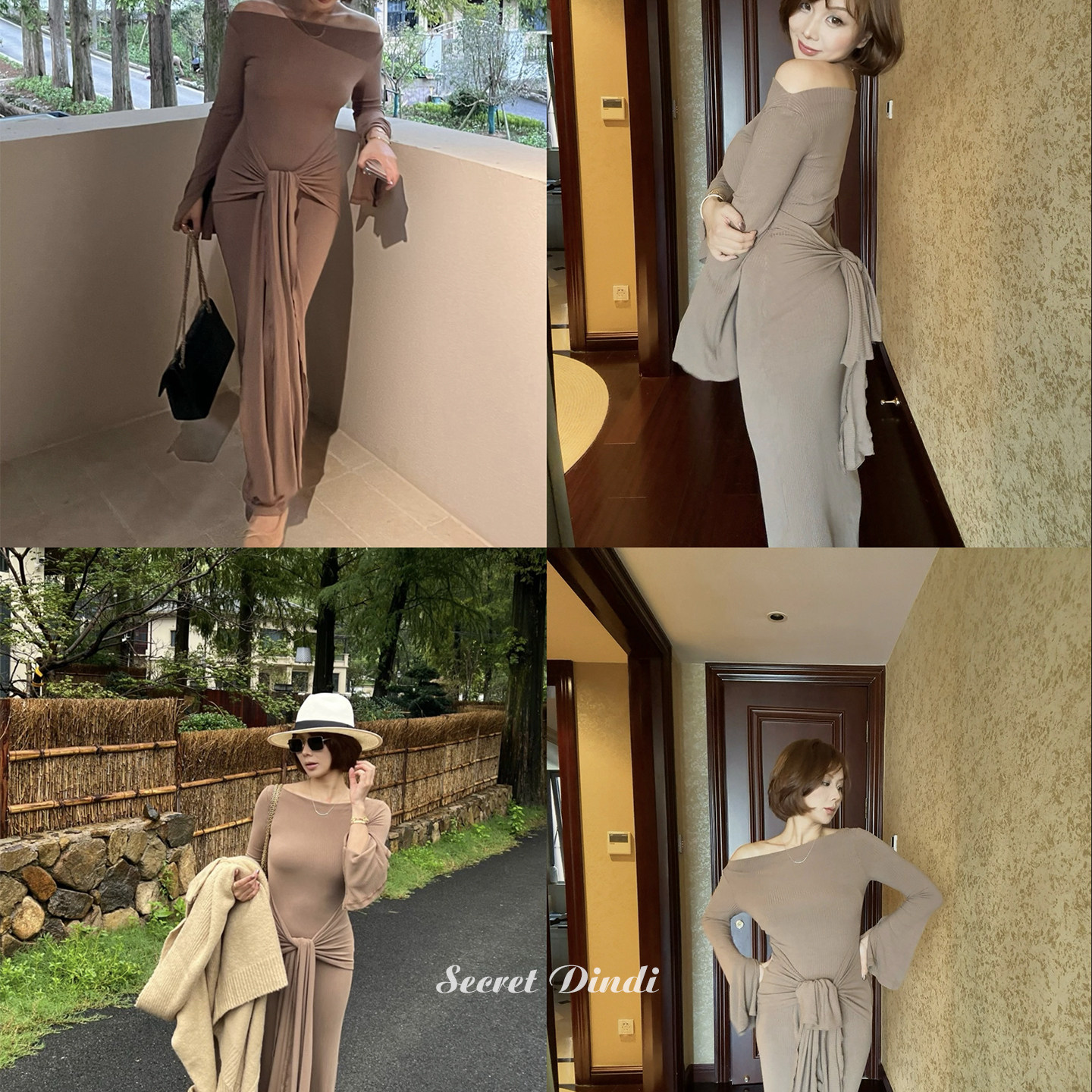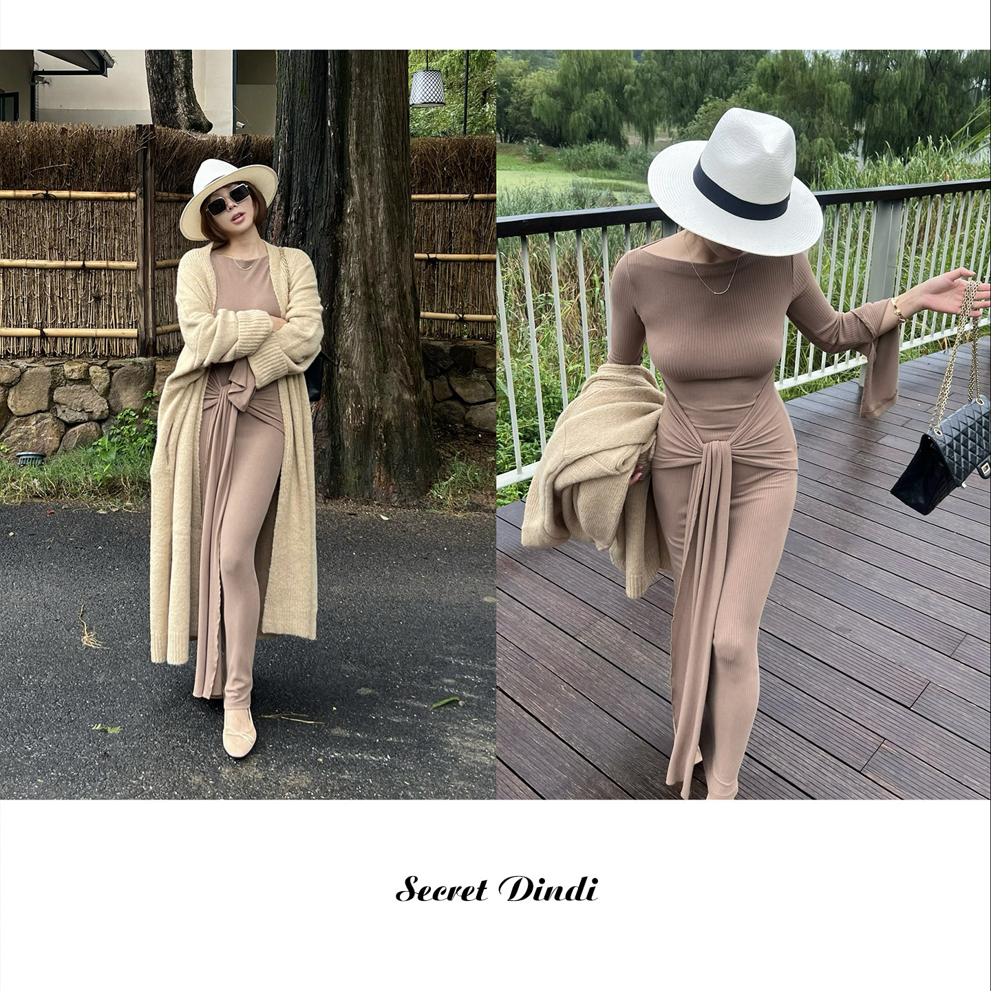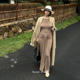 通勤裙子女 显瘦多穿法连衣裙休闲风修身 SECRET DINDI大地系喇叭袖