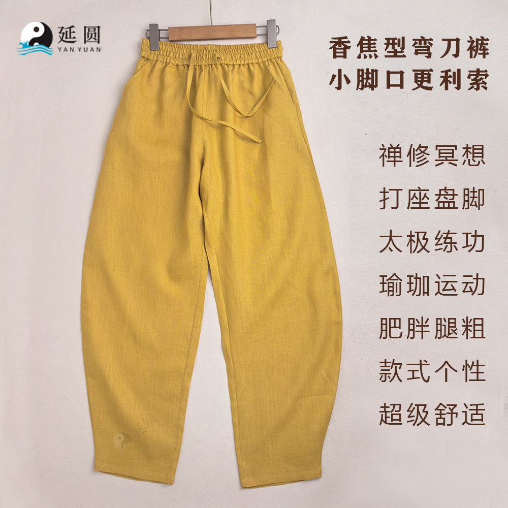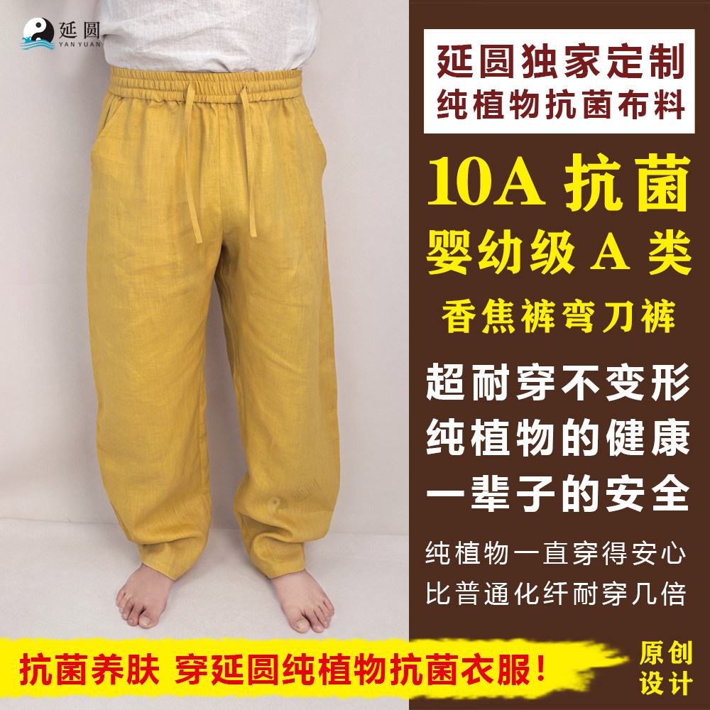 延圆纯大麻10A抗菌香蕉裤 男女通用婴幼级A类透气速干纯汉麻 弯刀裤