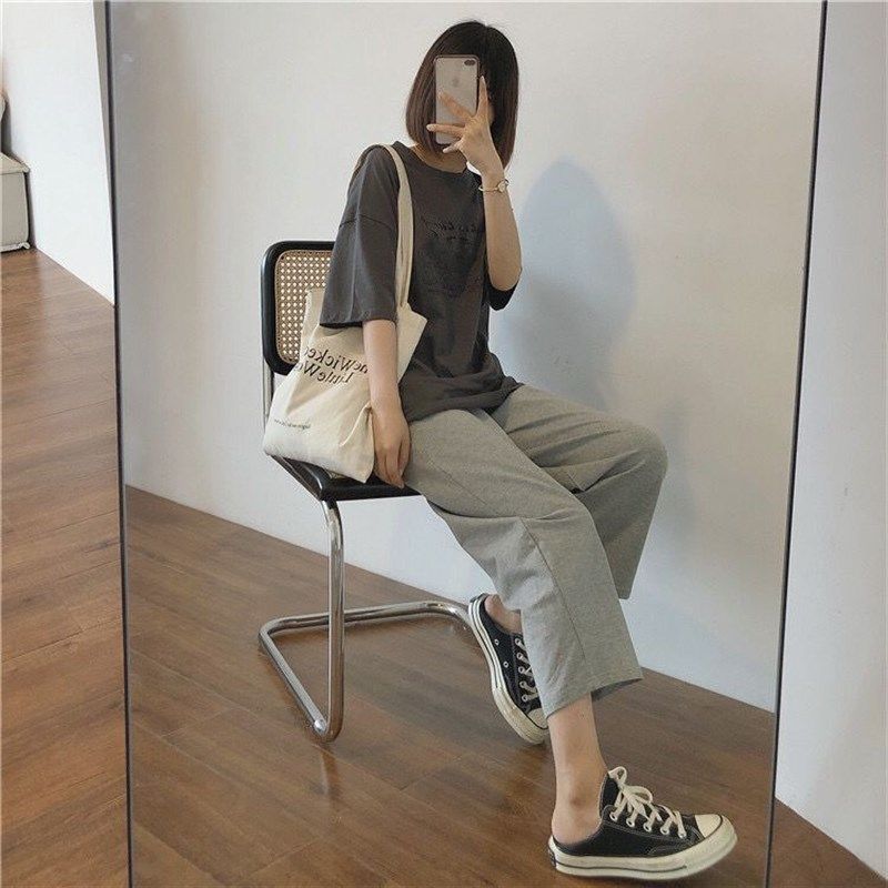 春夏薄款 W宽松阔腿裤 时尚 休闲直筒卫裤 显瘦九分裤 孕妇灰色运动裤