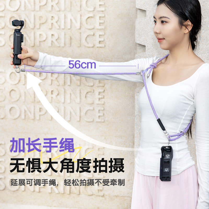 sunnylife适用于DJl大疆Pocket3相机斜跨绳摄像机配件挂绳手提防丢防摔背带绳防丢绳三扣多用挂绳螺丝可平放
