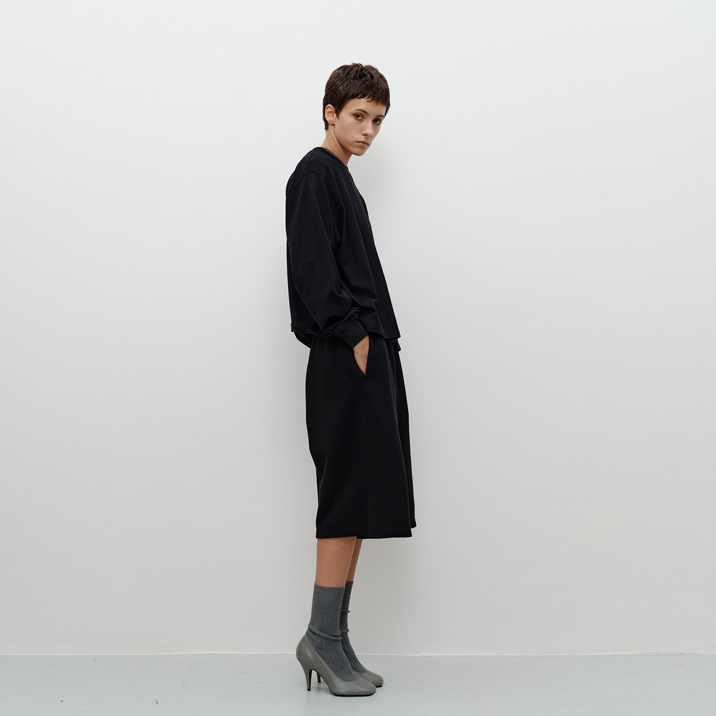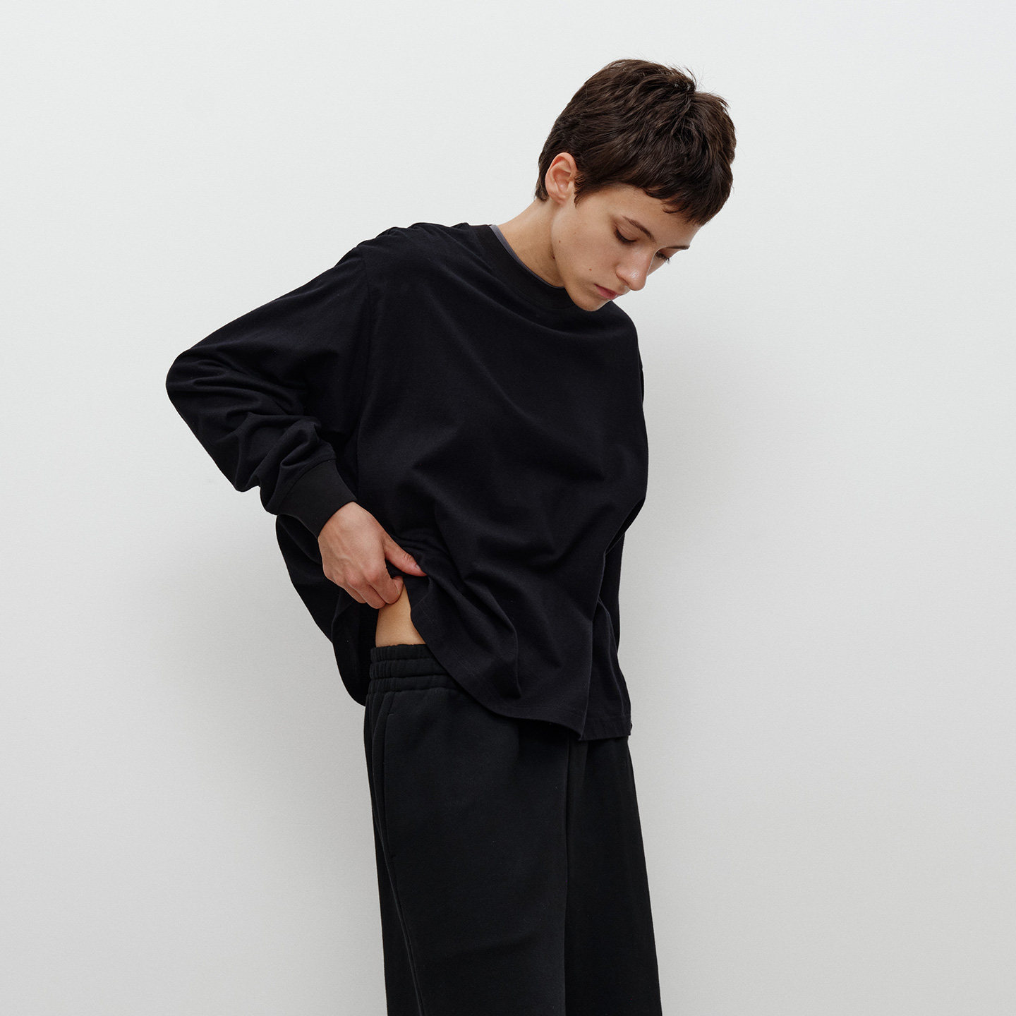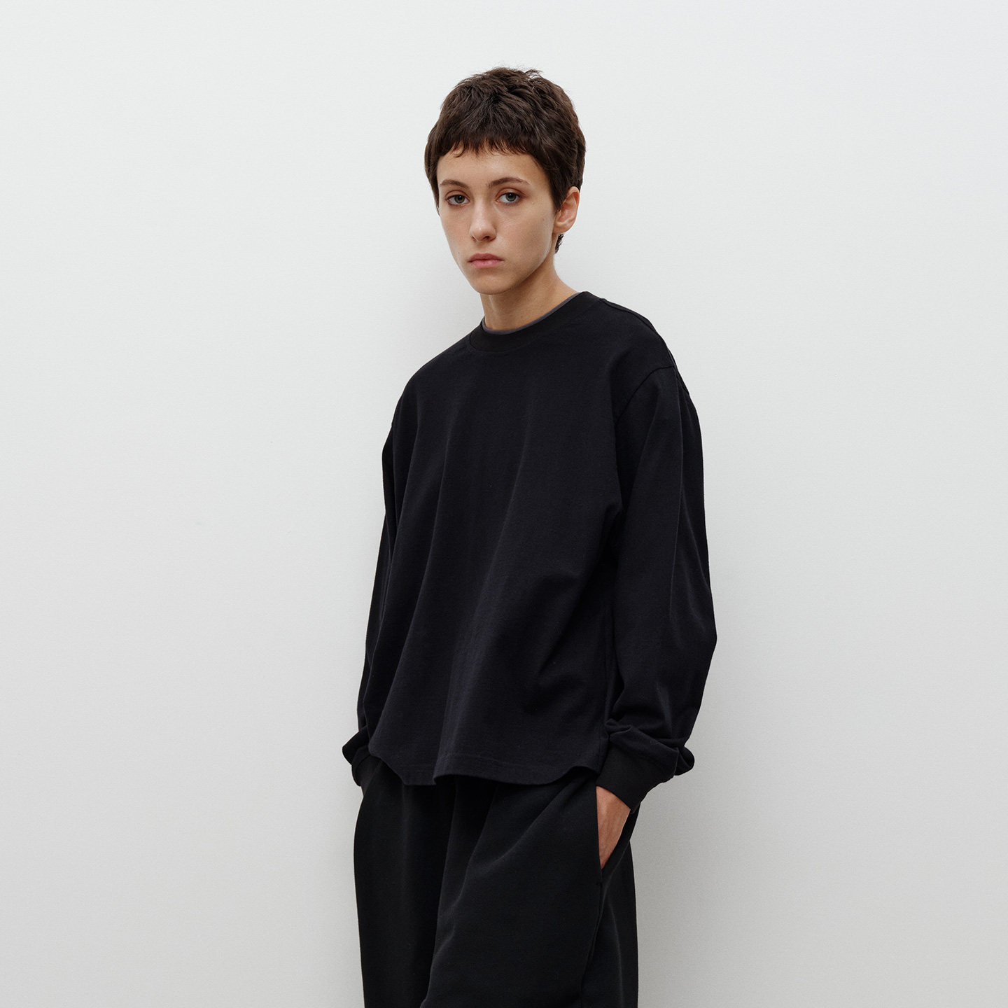 型袖 FILGood 短宽版 黑色T恤 口收口FG05T03 100棉长袖