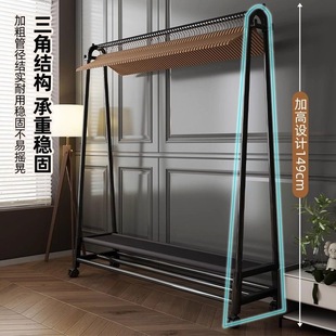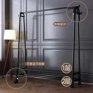 双杆式 衣帽架置地卧室阳台简易晾晒衣架双层挂衣杆升降收纳架带轮