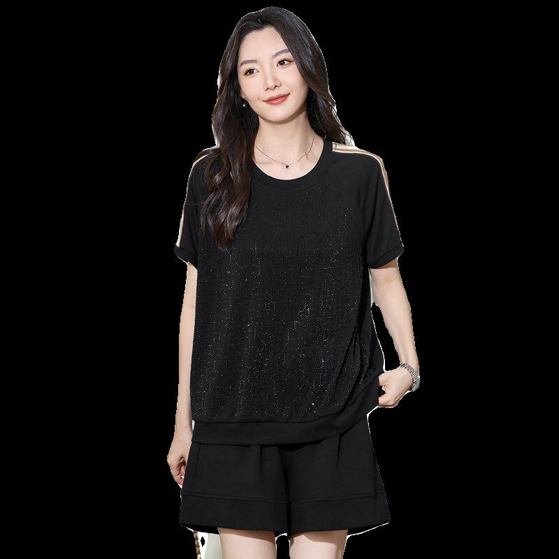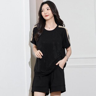 女装 T恤衫 夏装 休闲上衣胖mm宽松显瘦短袖 200斤胖妹妹简约时尚 大码