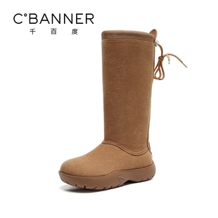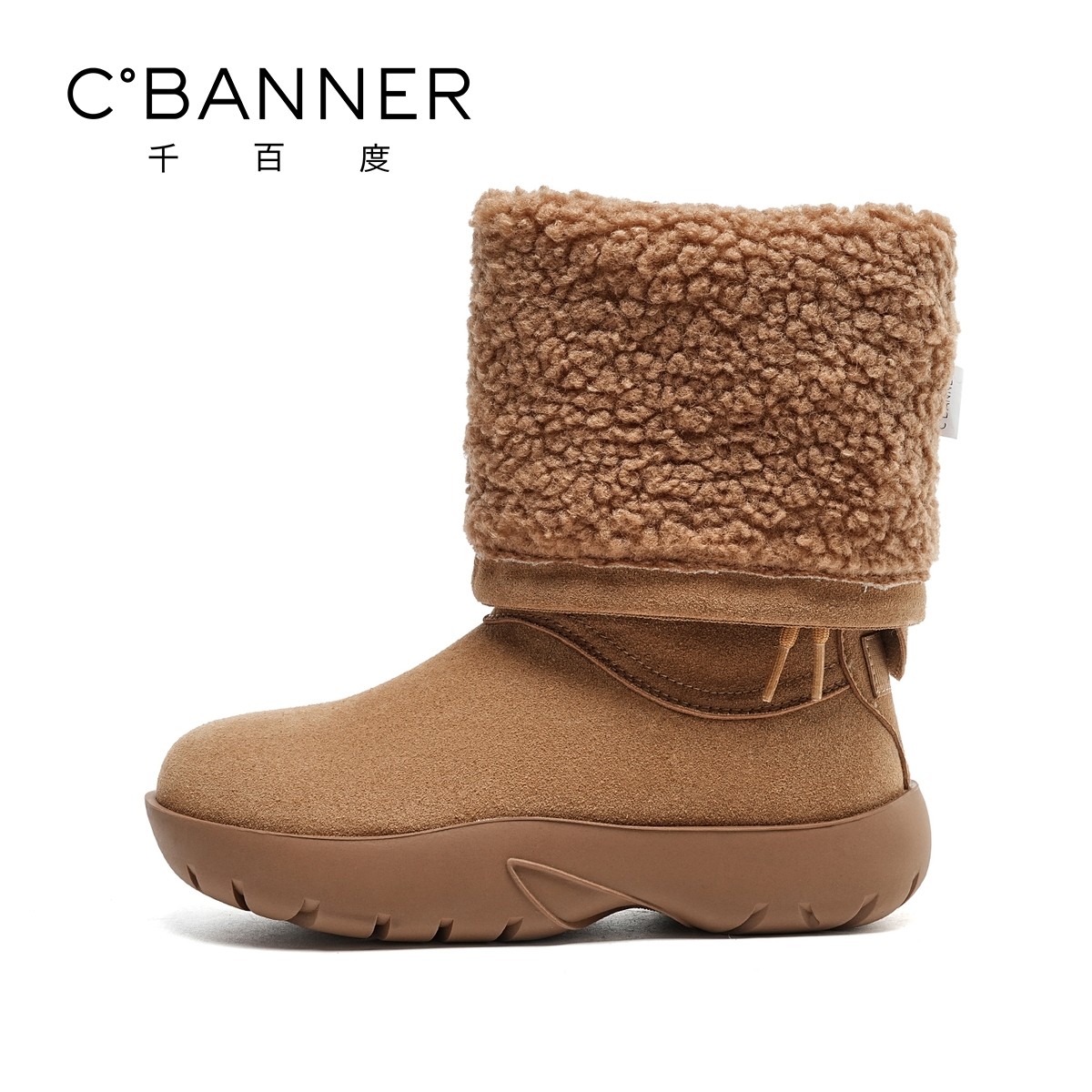 两穿短靴女 百搭长靴子女加绒棉鞋 千百度厚底雪地靴女2025冬季 新款