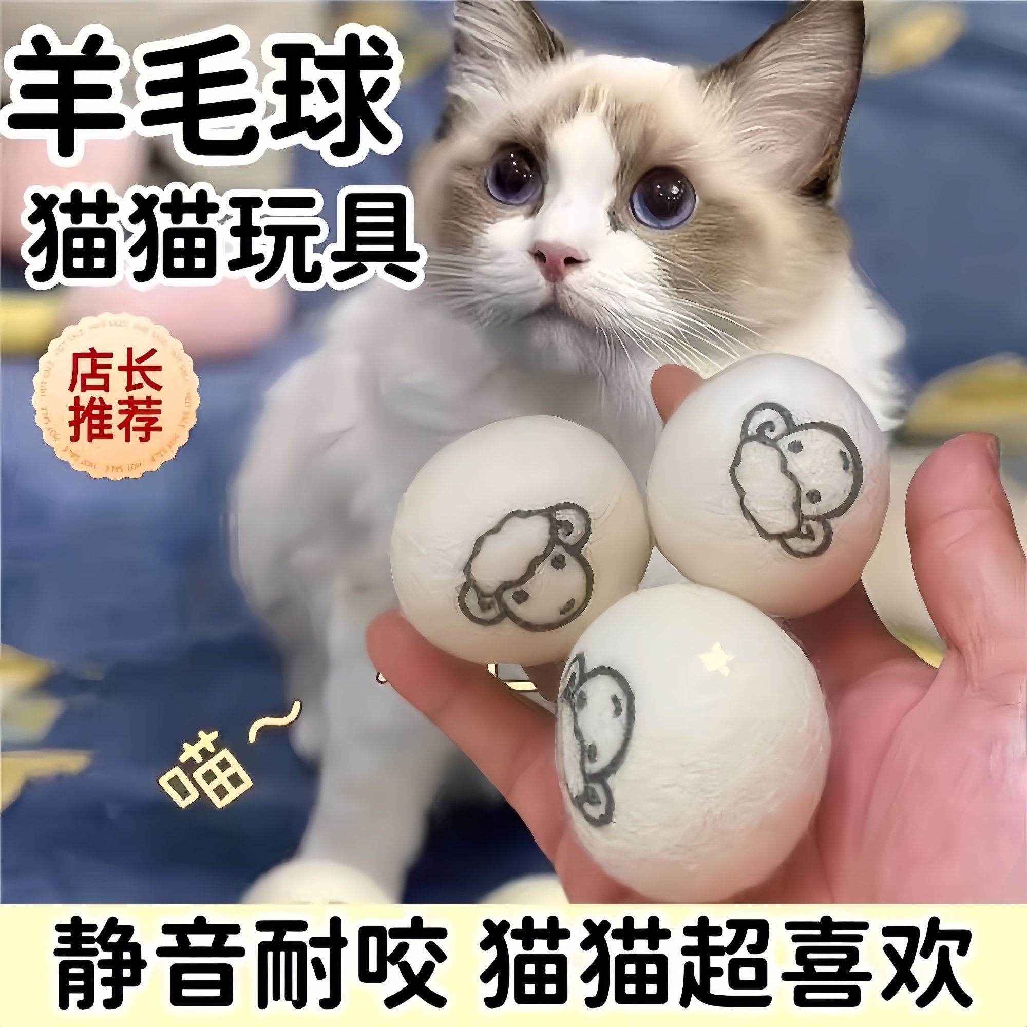 猫咪玩具羊毛绒球静音无声自嗨啃咬洁齿幼猫磨牙逗猫互动猫特大球