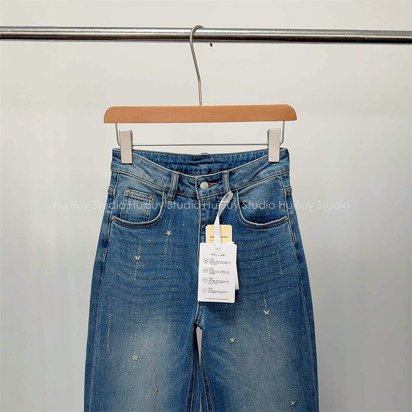 高腰宽松显瘦直筒阔腿裤 高品质牛仔裤 奢华烫钻 女秋 会buy实拍