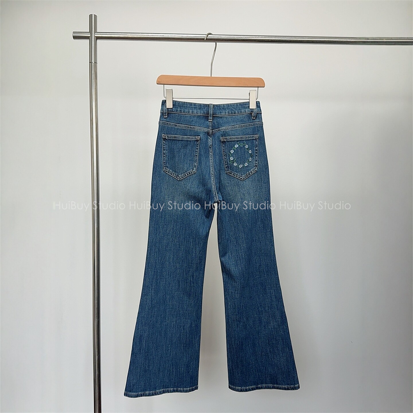 后口袋花刺绣四面弹牛仔裤 chao模腿 女休闲宽松秋新 会buy实拍