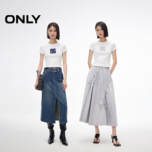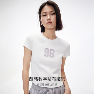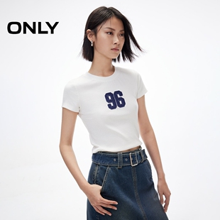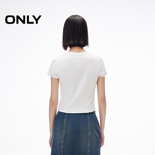 短款 ONLY2026春季 正肩修身 上衣棉混纺贴布圆领基础款 T恤女 新款